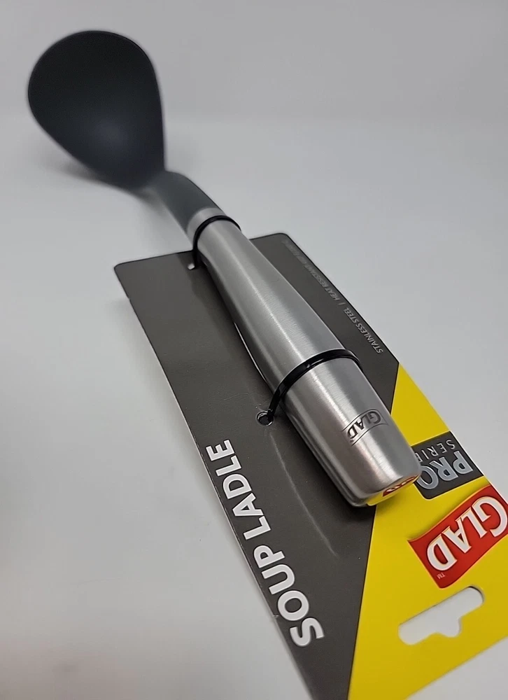 This Glad Pro Series soup ladle is a must-have for any kitchen. It is designed to make serving soups and stews a breeze. The ladle has a metal handle that offers a sturdy grip and ensures safe and easy handling. The gray color of the ladle complements any kitchen décor and is sure to impress your guests. The soup ladle comes with features like dishwasher safe, making it easy to clean and maintain. It is made of stainless steel and has a unit quantity of one. This ladle is perfect for serving different types of soups and stews.