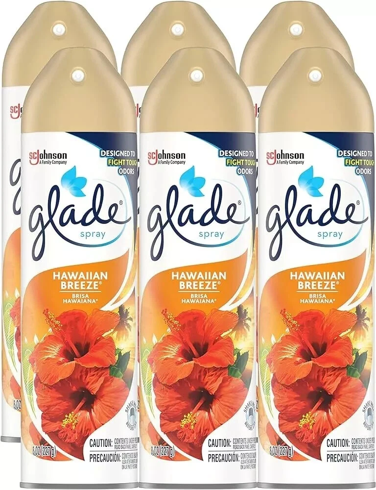 Product details Eliminate odor and make your home inviting for all with Glade Hawaiian Breeze Room Spray. Infused with essential oils, it instantly freshens the air in your bathroom, kitchen, living room, bedroom or den. This easy-to use spray can is designed to fight the toughest odors in your home, and provides up to 7 hours of freshness per use. Discover the layers of Hawaiian Breeze. Sip on a sweet tropical smoothie as the island breeze helps you discover your taste for fruity paradise. The essence of pineapple and juicy peach nectar excite the senses with exotic sweetness. Notes of mango and red berries blend smoothly to add complexity to this perfectly fruity fragrance. Hints of tropical flowers provide undertones of a lush and lively tropical bouquet. Pack of 6 Glade Room Spray 8 OZ. Air Fresheners. Notes of lush fruits and flowers burn on the horizon The totally re-designed Glade Hawaiian Breeze Room Spray provides up to 7 hours of freshness per use Fights tough odors and freshens the air with fragrance infused with essential oils Use this air freshener for home on a daily basis, or as the final touch after the cleaning routine This Glade spray puts perfect freshness at your fingertips