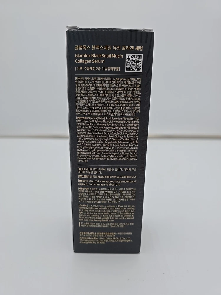 Glamfox Black Snail Mucin Collagen Serum 1.76 oz/50g EXP 10/26 New.
