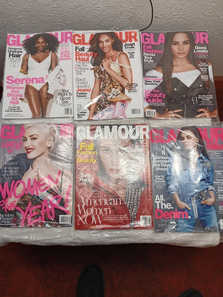 Complete 2016 set, still sealed...see pics. Dive into the world of glamour and lifestyle with this complete set of 12 Glamour Magazine issues from 2016. Each magazine offers a unique glimpse into the latest trends in fashion, beauty, and culture, featuring celebrated celebrities, captivating photography, and expert advice on fitness and modelling.Whether you're a fan of hobbies and crafts, sports, or simply love to explore diverse topics in news and lifestyle, these magazines cater to a wide range of interests. With all twelve months represented, from January through December, this collection is a treasure trove of inspiration and information for anyone looking to stay abreast of the happenings in the glamorous world.