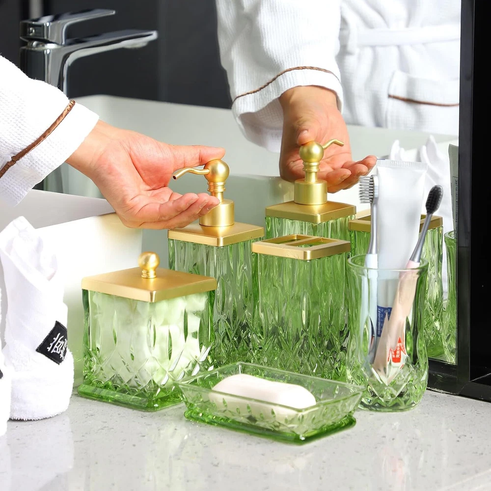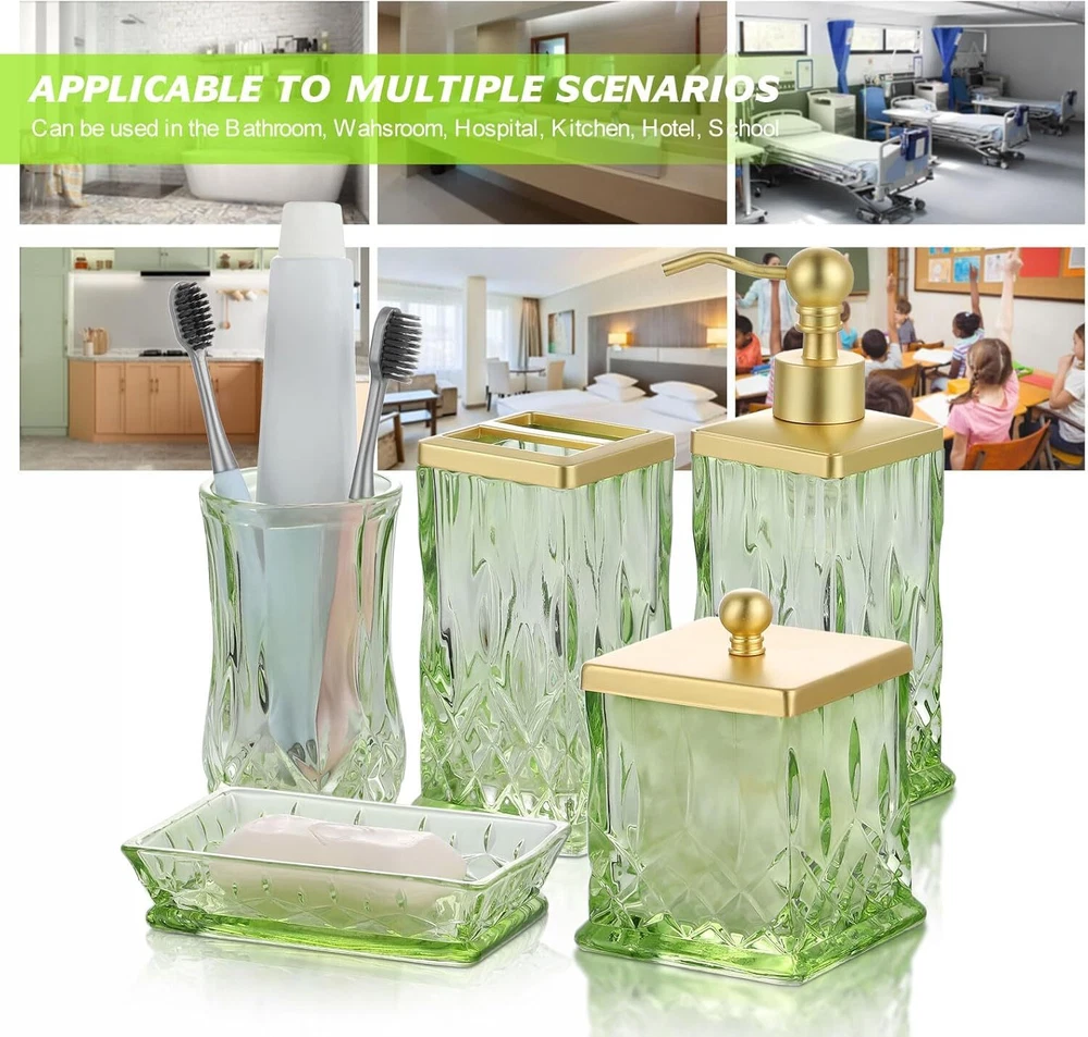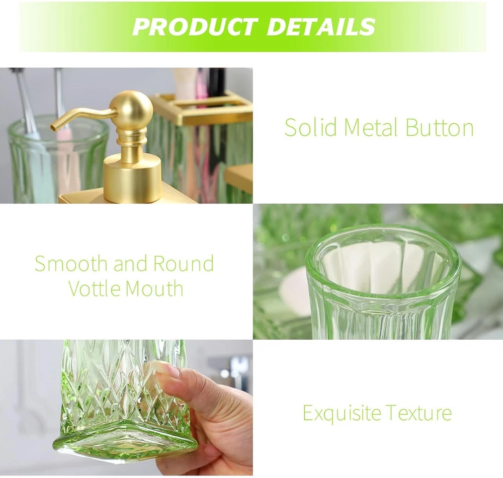 Glass Bathroom Accessories Set - Luxury 5 Pc Accessory Pink Product Details Number of Pieces: 1 Finish Type: glass Manufacturer: PYZX-HOME Package Dimensions: 16.22 x 11.06 x 5.98 inches Item Weight: 7.63 pounds Item model number: PYZX-HOME-03 Fabric Type: 100% Glass Finish types: glass Batteries required: No Material: Glass Color: Pink Brand: PYZX-HOME Style: Green Included Components: Lotion Dispenser, Tumbler, Toothbrush Holder, Soap Dish, Cotton pads Jars 100% Glass High borosilicate glass, Fivefold transparency compared to ordinary glass, resistant to pressure and stains, durable, easy to clean and maintain Luxury 5pcs Bathroom Accessories Set Includes Soap Dispenser,Tumbler, Soap Dish, Toothbrush Holder and cotton pads jar. All the accessories are using top-notch hardware not the plastic,Stuable,Pefect plating coating to avoid fading and rusting,undergo durability testing to ensure the can withstand the constant pressure and inpact of long time use GREAT GIFTS IDEA -- A perfect gift for family, friends, and coworkers; perfect as a housewarming present, wedding gift, and perfect for remodelers looking to upgrade the bathroom in their home or apartment; bathroom essentials for a new home; guest bathroom decor GREAT CUSTOMER SERVICE-- We are committed to presenting the best quality materials and satisfaction services to our customers. If you have any issue with the contemporary bathroom accessories set, contact us and Fully refund or Free replace