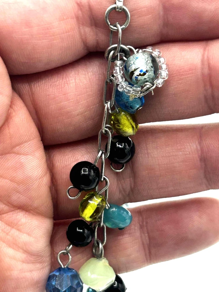 Glass Bead Multicolor Chain Link Lobster Clasp Charm Bracelet Add a splash of color to your wardrobe with this eye-catching bracelet featuring vibrant glass bead dangles and a charming chain link design, perfect for day or night. Its secure lobster clasp provides ease of wear while the playful fish accents add a whimsical touch. This piece is not only stylish but also versatile, making it an ideal accessory for any occasion. Condition: Good condition. Size: Features: Multicolor beads, Chain link, Lobster clasp, Fish accents Brand: Type: Bracelet Style: Charm Color: Multicolor Material: Glass Measurements: See pictures. Keywords: Jewelry, Bracelet, Multicolor, Beads, Charm, LobsterClasp, FishAccents, Accessory, Handmade, Fashion, Women, ArmCandy, Unique, Bohemian, Casual