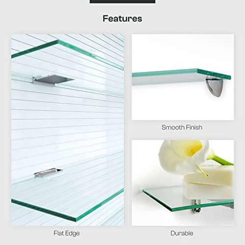Return Policy Fast Delivery Trusted seller Glass Shelf 8" X 30" Clear Product Description 8" X 30" Rectangle Glass Shelf Kit with Brackets Tempered Floating Corner Glass Shelf Kit 3/8" Thick Tempered Clear Glass Comes with 2 free Chrome Brackets For Easy Installation Shipping Returns Payment Shipping Shipping is FREE to all addresses other than APO/PO boxes in the lower 48 states. All our stock ships from US-based warehouses. Shipped via USPS or UPS (depending on location and package weight) Unless stated otherwise, all orders will ship within 24-72 hours of your payment being processed. Check our feedback to see the great reviews of FAST shipping we offer. Returns Seller does not accept returns Payment We currently accept payment via eBay managed payments only. Once payment is cleared, we will dispatch your shipment within 1-3 business days. Please refer to the "Shipping" tab for more information regarding shipping speed to your destination.
