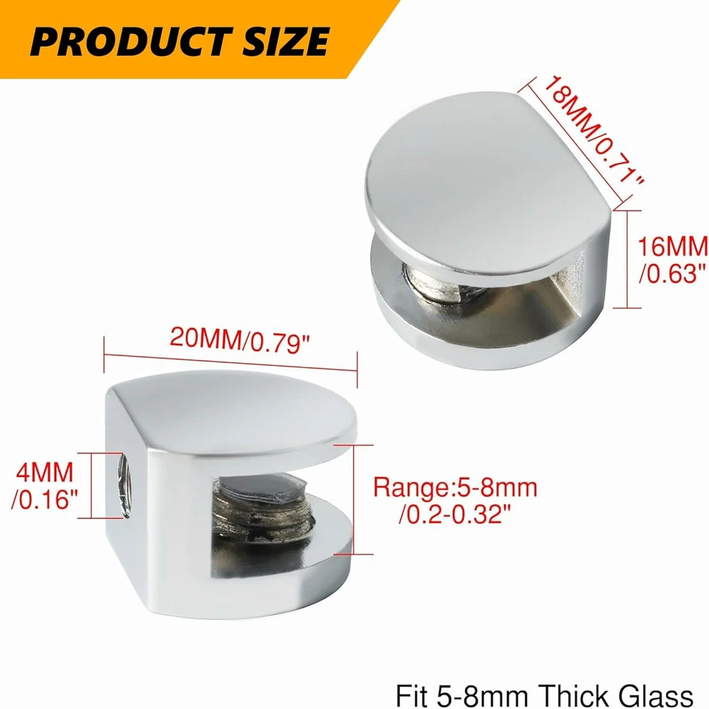 Store New Arrivals Add to Favorite View Feedback Contact Glass Shelf Bracket Adjustable Shower Brackets,Heavy Duty Clamp Holder for 5-8Mm Glass Shelves,Wall Mount Clamps Clip Support Hardware Parts,Bl3008-4P Polished Chrome Pack of 4 Description Item dimensions L x W x H 1 x 0.8 x 0.64 inches Mounting Type Wall Mount Item Dimensions 1 x 0.8 x 0.64 inches Color Polished Chrome Item Depth 1 inches Material Metal Material Type Metal Style Polished Chrome Model Number BL3008-4P Finish Types Polished Chrome Finish Type Polished Chrome Size Fit 5-8mm Thick Glass 【Zinc Alloy Material】The glass clamp are made of high quality zinc alloy material, which has excellent strength and toughness, and at the same time, it also has a certain degree of ductility, abrasion resistance and corrosion resistance; it can prevent it from being corroded and oxidized even in the harsh environments such as moisture, acid and alkali. 【Heavy Duty Metal】Glass shelf brackets are simple and compact, designed with heavy duty thickened solid metal structure to make it more load bearing and not easy to break.Glass retainer clips are suitable for installing all kinds of glass, wood products, shelves, glass doors, shower doors, glass cabinets, wine cabinets, etc. 【With Anti-slip Silicone Head】The glass shelf brackets with anti-slip silicone head has good friction and adsorption, which can hold the glass tightly to prevent sliding, and also can protect the shelf from wear and tear. 【Adjustable Design】The glass shelves brackets is suitable for 5-8mm(1/5 Inch-1/3 Inch)thick glass; you can adjust it within the adjustable range according to your needs. The glass clips can be mounted on glass shelves, glass cabinet doors or other glass furniture. 【Easy To Install】The size of the shelf clamp is 0.79*0.63 inches, the screws required for installation are included. You just need to fix the glass holder on the wall, put the glass or board into it, and then screw on the screws for successful installation, convenient and fast. Product Description 1 Kitchen 2 Bathroom 3 Study Room 4 Under The Mirror 5 Cabinet Alise Glass Shelf Bracket Add to Cart Add to Cart Customer Reviews 4.4 out of 5 stars 228 4.5 out of 5 stars 226 4.2 out of 5 stars 39 4.4 out of 5 stars 250 4.4 out of 5 stars 24 Price $6.39 $ 6 . 39 $9.99 $ 9 . 99 $9.59 $ 9 . 59 $7.19 $ 7 . 19 $8.99 $ 8 . 99 Material Zinc Alloy Zinc Alloy Zinc Alloy Zinc Alloy Zinc Alloy Installation Screw Mount Screw Mount Screw Mount Screw Mount Screw Mount Fit for 5-8mm 6-10mm 10-12mm 8-10mm 8-12mm Colour Polished Chrome Polished Chrome Polished Chrome Polished Chrome Polished Chrome Pieces 4 4 4 4 4 ABOUT US We offer the best prices around on high quality products. Our E-store includes media such as books, movies, music and games while offering electronics, toys, sporting apparel, clothing, tools, general home, garden items and more. SHIPPING We are always working hard to ensure your package arrives as soon as possible. Please understand that some factors like weather, high postal traffic, and the performance of shipping companies are outside of our control. We offer free shipping to the lower 48 states and ship within 2 business days of payment, usually sooner. We do not accept P.O. Boxes. Please provide a physical address. For shipping outside of the continental USA, we only use eBay's Global Shipping Program.The item is shipped to KY and then sent to the rest of the world. International customers are responsible for all duties and taxes. Continue to check out in order to calculate costs for shipping the item to your country. Messages regarding eBay's Global Shipping Program MUST be directed at eBay EXCLUSIVELY. RETURNS We offer a 30-Day Return Policy on items which you are not completely satisfied with. You have the option for a full-refund or an exchange of the item. No returns are available on items shipped outside of the USA. PAYMENT We accept PayPal. CONTACT US This page content is yet to come Please ad us to your favorite seller and visit again later Thank You CUSTOMER SATISFACTION We try our very best to make sure every customer is completely satisfied. If there's a problem, message us! We're happy to help. WE ACCEPT Copyright © 2021 AutoDS. | All Rights Reserved