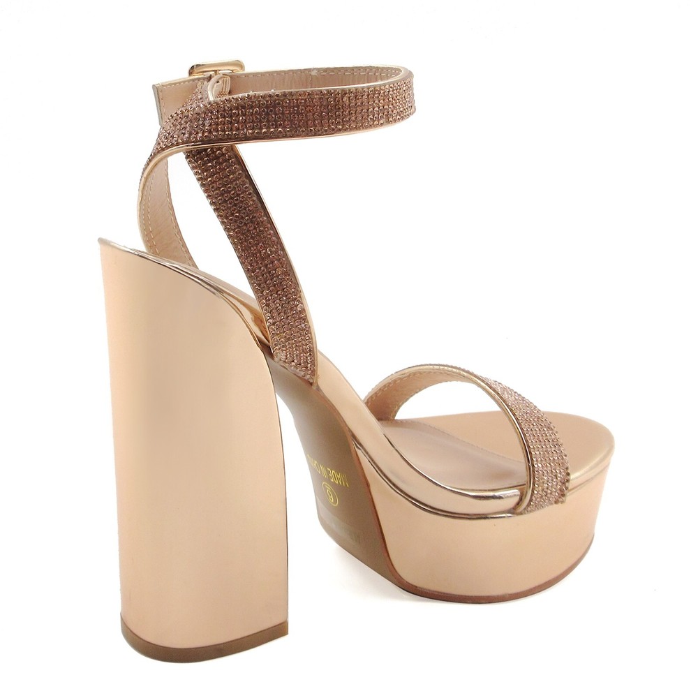 Description: Step into glamour with these stunning platform sandals in a luxurious metallic finish. The dazzling rhinestone-embellished straps add a touch of sparkle, making these shoes perfect for special occasions and evening events. Featuring a chunky 5.5-inch block heel balanced by a 2-inch platform, these sandals offer both height and stability. The ankle strap with golden buckle closure ensures a secure fit, while the padded footbed provides comfort for extended wear. The metallic finish extends to the platform and heel, creating a cohesive, eye-catching look. These statement shoes pair beautifully with formal dresses, evening gowns, or your favorite party attire. The combination of glitter and shine makes these platforms an ideal choice for proms, weddings, or any celebration where you want to make a lasting impression. Payment Information: We Accept PayPal We Accept Credit Card via PayPal Shipping Information: We provide Same Day FREE SHIPPING domestically within the U.S.A USPS Priority (2-3 business days) & USPS Priority International (14 days with tracking) We reserve the right to charge additional shipping fee for reship items due to wrong shipping address provided during checkout. All orders before 5PM EST will ship out same day!, Monday - Friday Ships Same Day with TRACKING! Refund & Return Policy: We offer a 30 day return policy on all items purchased from us. Please contact us within 30 days after receipt of the item for a return. Do not ship the item back to us without contacting us first. Return shipping is responsibility of buyer.
