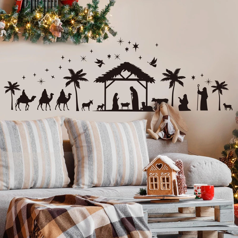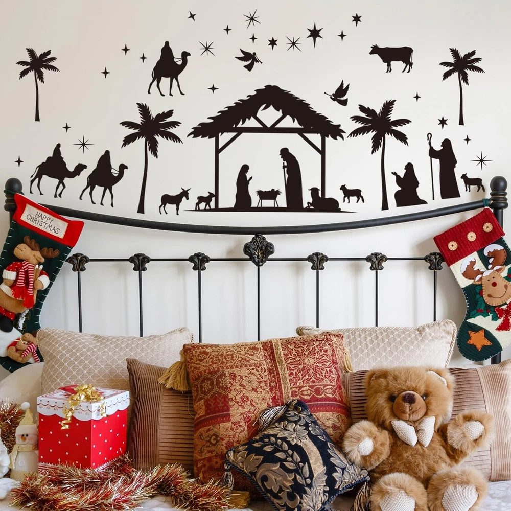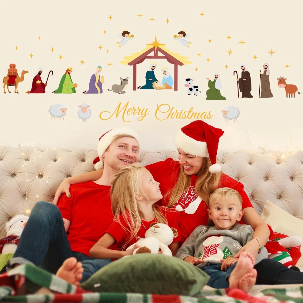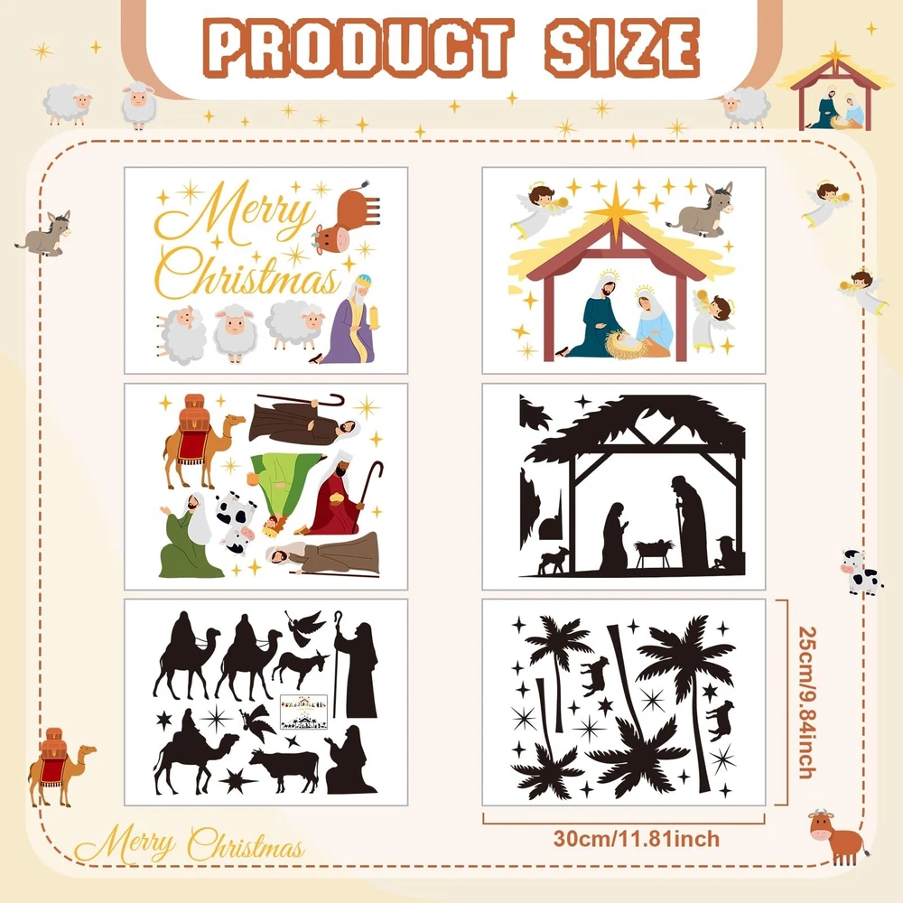 Glenmal 6 Sheets Christmas Religious Wall Decal Stickers Large Colorful Nativity Scene Wall Decals Stickers Christian Removable Modern Decor for Xmas Holiday Room Living Room Bedroom Product Details Brand: Glenmal Theme: Religion Cartoon Character: Christmas Special Feature: Reusable Number of Pieces: 6 Age Range (Description): Baby Reusability: Single Use Item Form: Sheet Pattern: Tree Indoor/Outdoor Usage: Indoor Brand: Glenmal Theme: Religion Cartoon Character: Christmas Special Feature: Reusable Number of Pieces: 6 Age Range (Description): Baby Reusability: Single Use Item Form: Sheet Pattern: Tree Indoor/Outdoor Usage: Indoor Finish Type: Painted Number of Items: 6 Package Dimensions: 12.71 x 10.16 x 0.47 inches Item Weight: 5 ounces Manufacturer: Glenmal Country of Origin: China Item model number: Glenmal-Wall Stickers & Murals-1408 Date First Available: July 5, 2023 Christ Theme: you will get 3 sheet black and white silhouette style and 3 sheet colorful silhouette style Christmas nativity scene wall decoration, simple and exquisite suitable for living room, bedroom, etc., bring the Christmas atmosphere to every corner of your home Novel Design: Christmas nativity scene stickers designed for this Christmas, using the classic nativity scene to bring you hope and blessings on this memorable day; Christmas wall decorations can be placed as you wish, DIY your own style artwork in minutes; It can also be a striking religious decoration in the Christmas home space, making your walls look like painted Reliable Material: nativity scene stickers are made of vinyl material, fine workmanship, waterproof and the color is delicate and not easy to fade, odorless and safe, can serve you for a long time without spoiling your walls and falling off easily; Easy to clean up, you can use with confidence Easy to Peel and Stick: Christmas decorations religious wall decal stickers come with their own adhesive, when pasting, just tear off the backing paper, calibrate the position on the wall, gently put it on, make sure the position is accurate, and then start pressing to make it firm, thus you can finish pasting; When you want to change the mood, just gently tear off, will not leave any stains, easy to operate Versatile Usage: Christmas nativity decors can be applied to most hard and smooth surfaces, such as walls, ceramics, glass, mirrors, doors, furniture, metal, windows and so on; Also applicable for bathroom, wardrobe, living room, bedroom and so on, removable without spoiling your walls; Textiles, uneven surfaces and freshly painted walls are not recommended; Please remember to clean the surface and keep it dry before application Features: Usages: Clean the surface you want to stick, ensure the surface has no dust, dirt and water. Peel off the stickers from its sheet. Paste the stickers on the surface you want. If the stickers have some air bladder, you can use a ruler or a card to gently scratch the stickers to remove them. Novel design: Christmas nativity scene stickers designed for this Christmas, using the classic nativity scene to bring you hope and blessings on this memorable day. Christmas wall decorations can be placed as you wish, DIY your own style artwork in minutes. It can also be a striking religious decoration in the Christmas home space, making your walls look like painted Specifications: Material: PVC Color: as shown in the pictures Size: as shown in the pictures Package includes: 6 Sheets Christmas nativity scene stickers Notes: Manual measurement, please allow slight errors on size. The color may exist a slight difference due to different screen displays.
