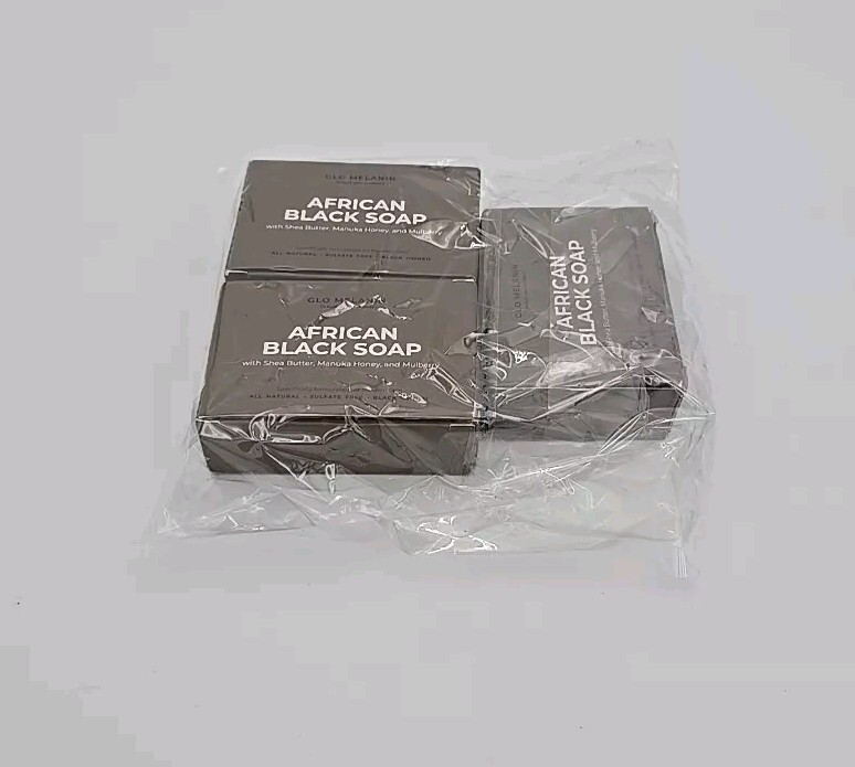 African Black Soap Bar Glo Melanin Shea Butter Manuka Honey 3 Pack New.