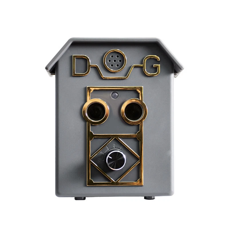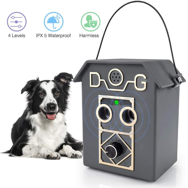 DESCRIPTION Stop nuisance barking without using a collar with the newest version of the global bestselling ultrasonic bark deterrent. The UL20 Ultrasonic Bark House has two ultrasonic speakers which effectively doubles the intensity of the original bark house model. The device detects barking up to 15 metres away then emits ultrasonic sound that is irritating to the dog but quiet to humans. The dog will quickly associate the ultrasonic sound to barking, which will stop or significantly reduce unwanted barking. This is safe, fast and efficient. You are able to target multiple dogs with one device! 9v battery is included in every box. UL20 Ultrasonic Bark Deterrent Features: Uses ultrasonic sound to deter unwanted barking Detects the sound of barking up to 15 meters 4 levels of operation including test mode , 3 range levels , On/Off switch 9v battery is included in every box Durable and weatherproof for outdoor use. Safe for indoor use. LED power/low battery indication.