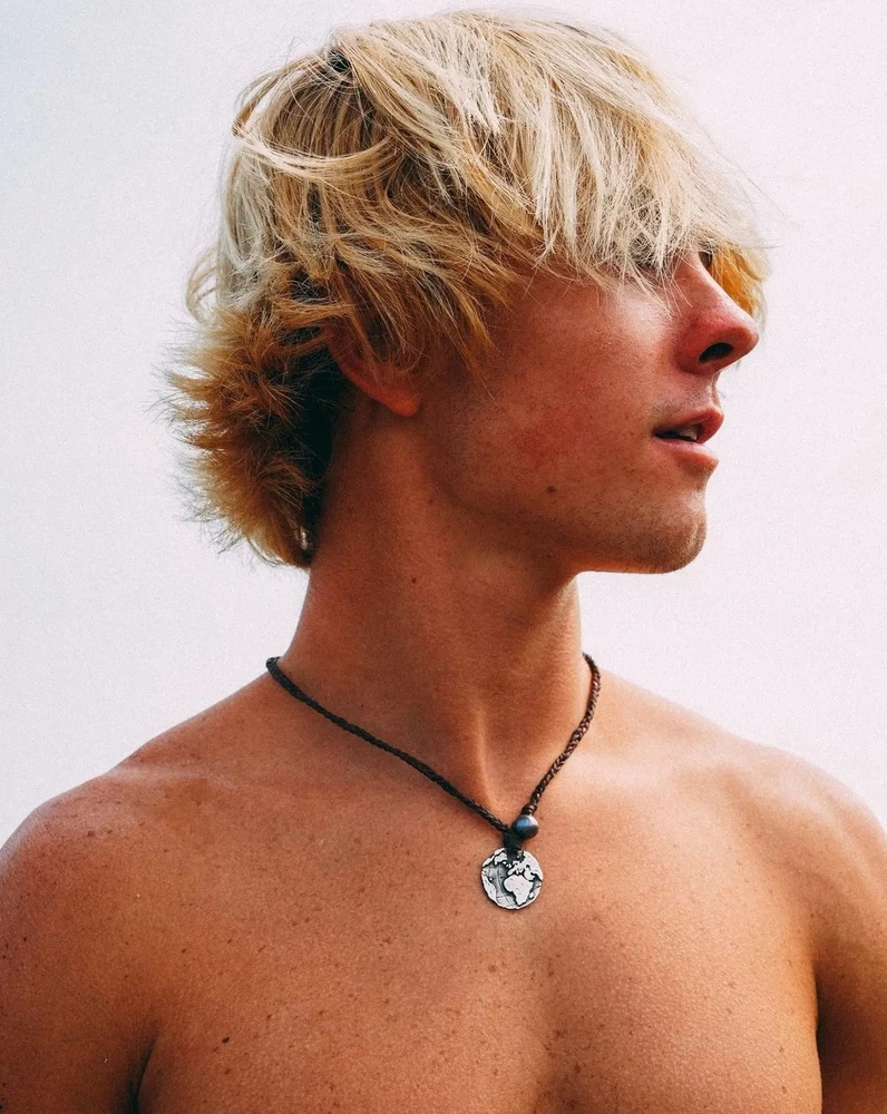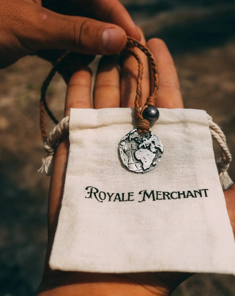 Globe Coin Necklace Navigate life's adventures with confidence wearing the Globe Coin Necklace. Crafted Premium 925 Silver, Leather & Authentic pearls, it is an accessory that complements any outfit and never needs to be taken off. - 925 Silver - Premium Black Pearl - Two white pearls in back for size adjustment - Authentic Braided Leather Chain Each piece is handmade to last a lifetime.