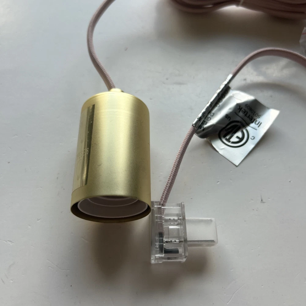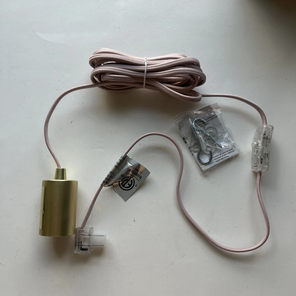 Open box New item! TRENDY MINIMALIST DESIGN: brighten any corner of your room using the trendy minimalist design of the Emile Pendant Light exclusively from the Novogratz and Globe Electric EXPOSED SOCKET: create a custom design with this exposed socket by adding one of our exceptional vintage-inspired or designer-created bulbs TRENDY COLORS: with this stunning mix of pink and brass, your home lighting will stand out for all the right reasons – on-trend and always in style BULB REQUIREMENTS: 1x E26 Medium Base 60W Bulb (sold separately) - Compatible with LED, Incandescent and Halogen Bulbs - LED or Incandescent Bulbs Recommended VERSATILE PLACEMENT: not only is the 15-foot hanging cord a superb color, it also allows you to place your pendant wherever you need it most