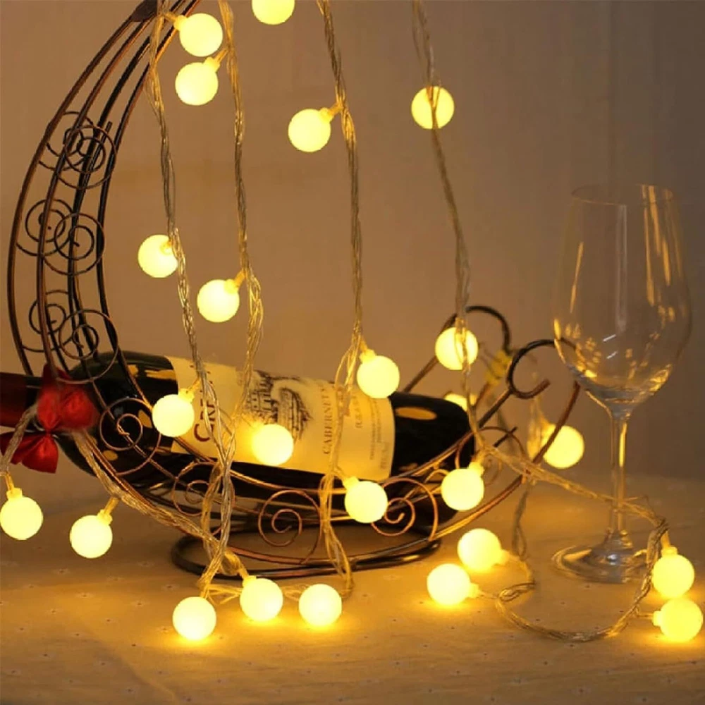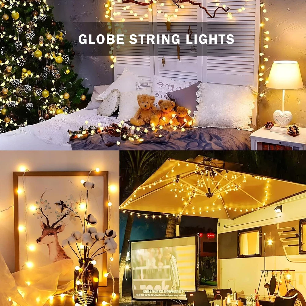 Package Dimensions ‏ : ‎ 6.3 x 3.14 x 3.54 inches; 4.93 Ounces Item model number ‏ : ‎ QXD640 Batteries ‏ : ‎ 3 AA batteries required. Manufacturer ‏ : ‎ Premium Quality & Safety:Spherical light string are 20 feet long and composed of 40 0.66-inch small round beads. Spherical lights are an ideal choice for decorating holiday atmospheres. Christmas lights can be bent at will to turn your bedroom into a winter wonderland Remote Control & 8 Modes:Fairy lights have 8 light modes to choose from combination, wave, sequence, slow, chase, slow fade, flashing and steady on.Spherical light with remote control can quickly turn on and off the lights in the room, and adjust the brightness to 25%, 50%, 75%, and 100% Battery Powered & IP65 Water Proofing:Ball string lights adopt battery-powered design,led string lights are energy-saving and have long service life, and the IP65 water proofing wires and bulbs can be decorated indoors and outdoors. Very suitable for adding calm colors to bedrooms or even university dormitories Indoor & Outdoor Decorations:Outdoor string lights are suitable for most places, such as bedrooms, patios, porches, pergolas, bistros, backyards, balconies, gazebos, decks, and are widely used in weddings, parties, festival, celebrations, camping and other occasions. Add sparkle to your home decoration and create a warm, joyful and festive atmosphere. Best choice for interior decoration and bedroom lights Easy Installation & First Class Service:Indoor string lights can be easily installed around Christmas trees, curtains, furniture, etc. If you have any questions about this globe string lights, please contact us. Our team will reply to you within 24 hours to provide you with a satisfactory solution