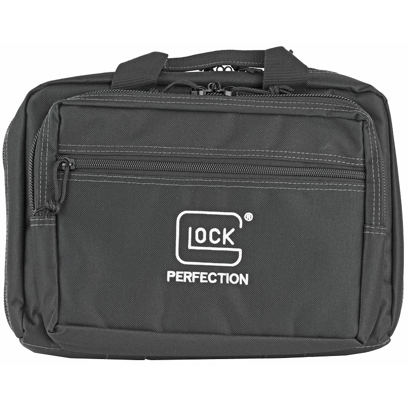 Our eBay Store Glock OEM Double Pistol Range Bag w/ Carry Handle Dual Padded Handgun Case The Glock Double Pistol Range Bag features a dual padded compartments provide protection and easy access to two handguns. In addition the range bag has 5 internal magazine holders and a center compartment for ammo and range tools. Features: Exterior Dimensions: 12.5" x 9.5" x 4.5" Padded Compartments Holds 2 Handguns Internal 5 Magazine Holders Center Compartment for Ammo
