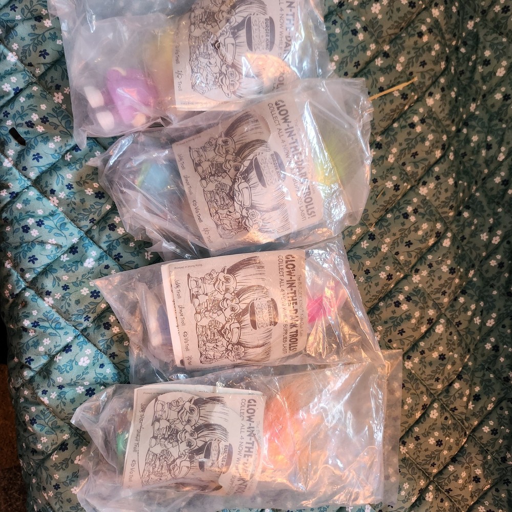 Glow In The Dark Trolls Dolls Burger King Kids Meal VTG Toy Full Set Of 4 Sealed. Condition is New. Shipped with USPS Ground Advantage.