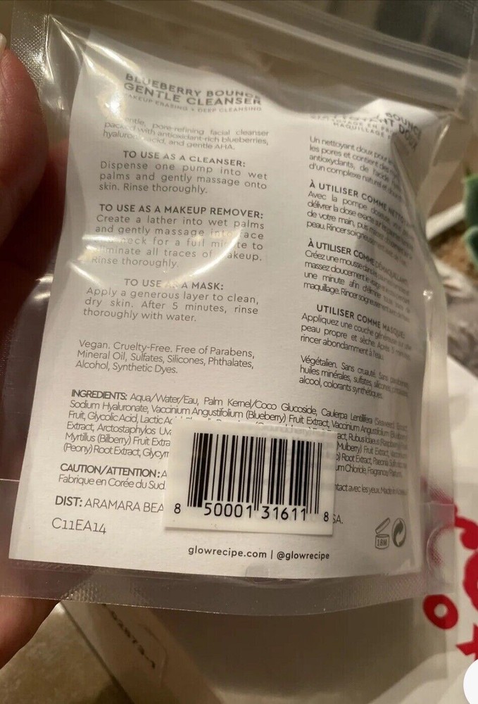 4 Glow Recipe Blueberry Bounce Gentle Cleanser Hydrating 30mL 1oz. Travel Size