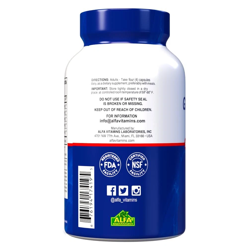 provides glucosamine, chondroitin, collagen and MSM (Methyl Sulfonyl Methane). Daily intake may help support the elasticity and cushioning in joints. Provides Glucosamine, Chondroitin, MSM, and Collagen from a natural source. May help with lubrication and mobility. 🔹ALL THE SUPPORT YOU NEED - Provides Glucosamine, Chondroitin, MSM, and Collagen from a natural source 🔹are small and easy to swallow. Helps support movement and wellbeing. 🔹EXTRA POWERFUL 4-IN-1 FORMULA - What makes really stand out from other joint support supplements is its specially formulated 4-in-1 composition. Apart from glucosamin and chondroitin, it also contains MSM, an organic source of sulfur, as well as extra collagen - which also benefits your skin . 🔹PREMIUM QUALITY MADE IN USA - When it comes to our nutritional and dietary supplements, we make a point of using nothing but the finest quality and natural ingredients we can get our hands on, as well as state-of-the-art production processes and strict quality control. all of our products are sealed together for safety! 🔹ORDER IT NOW, RISK FREE! - At Alfa Vitamins, we stand 100% behind our glucosamine & chondroitin supplements. After all, some of us use them ourselves! If, however, the you receive doesn't live up to your expectations, don't hesitate to us and benefit from our money back policy!