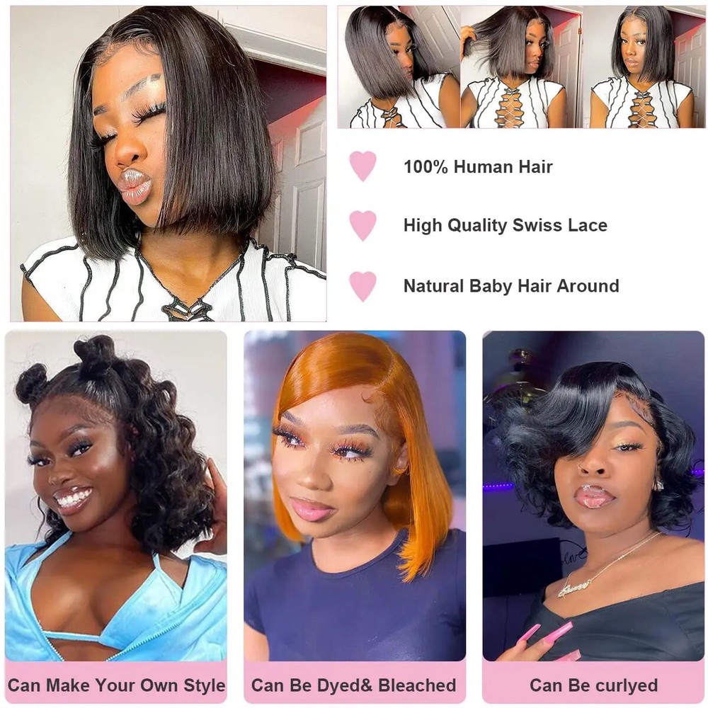 $ 105.79Glueless Short Bob HD Lace Wig with Pre Plucked Bleached Knots Human Hair