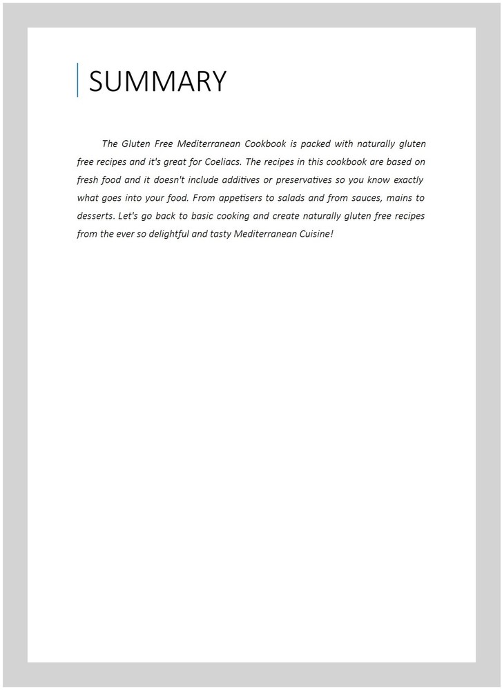 This cookbook is a game-changer for anyone eating gluten-free! The recipes are fresh, simple, and full of Mediterranean flavors. I love that everything uses real ingredients—no weird additives. The variety is amazing, from tasty appetizers to satisfying main dishes and even delicious desserts. Perfect for coeliacs or anyone wanting healthier, wholesome meals. Cooking feels effortless, and every dish turns out fantastic! Highly recommend.