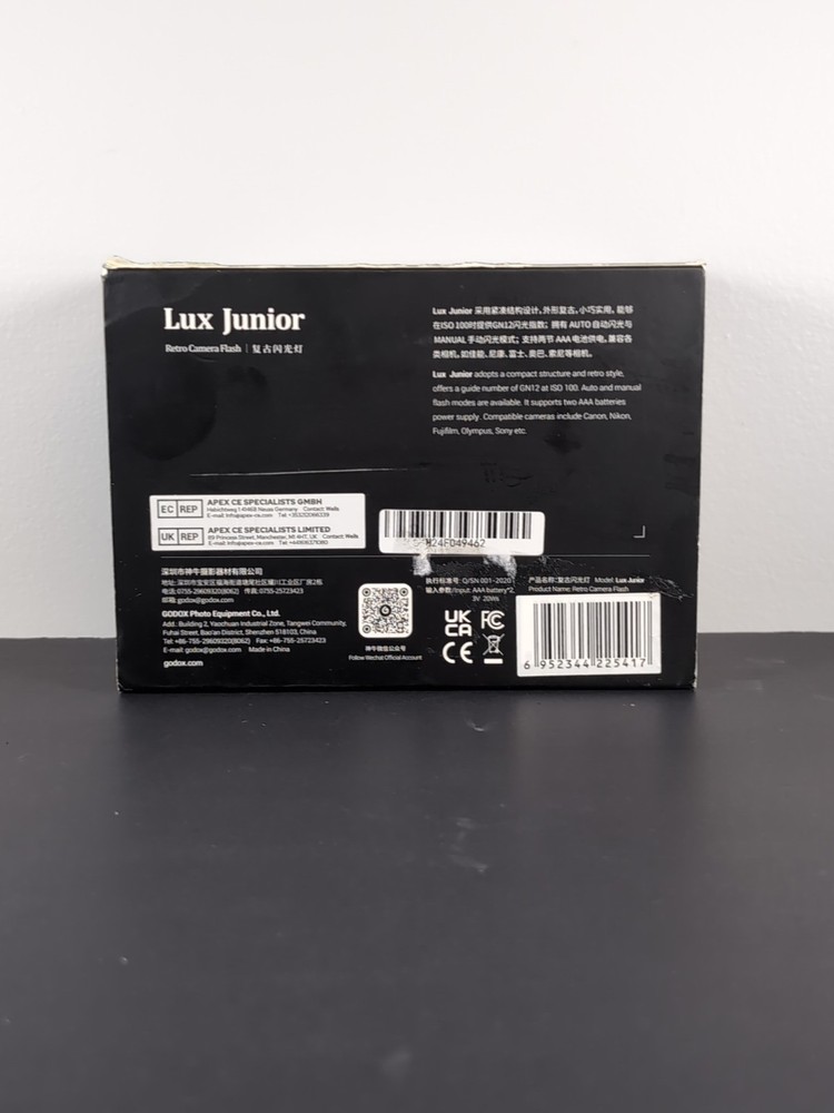 Elevate your photography experience with the Godox Lux Junior Retro Camera Flash, a seamless blend of vintage design and modern functionality. Compatible with a wide array of cameras including Canon, Nikon, Fujifilm, Olympus, and Sony, this versatile unit is equipped to enhance your shots across various photographic styles and settings. The Lux Junior Retro offers both auto and manual modes to accommodate your creative needs, while its hot-shoe mount ensures a secure and easy attachment to your camera. With its sleek black finish and intuitive operation, this flash is an essential tool for both amateur and professional photographers looking for that extra edge in their lighting. ______________________________ I nternational buyers – please note : Import duties, taxes, and charges aren't included in the item price or postage cost. These charges are the buyer's responsibility. Provincial Sales Taxes - please note : As a registered business in Ontario, applicable provincial sales taxes will be collect and remitted by eBay on our behalf.
