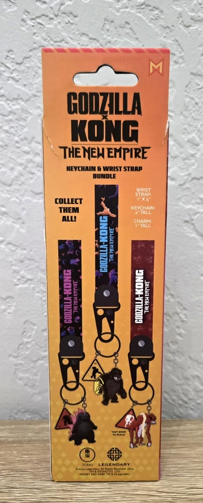 *Free shipping with USPS Ground Advantage. Ships ASAP. Packaged with care. Smoke-free home.* Please note - box has a tear on the backside as shown in the attached pictures. This Godzilla x Kong Keychain & Wrist Strap is the perfect addition to any fan's collection. Featuring King Kong, this collectible item is exclusive and boxed, making it a must-have for any fan of the Godzilla x Kong franchise. The multicolor design and 2-inch height make it a great display piece, while the keychain and wrist strap make it practical for everyday use. Manufactured in China in 2024, this action figure is suitable for ages 5+ years and is part of the Monsterverse brand. The Godzilla x Kong Keychain & Wrist Strap is a great way to show off your love for the TV, movie, and video game theme. Get yours today and add it to your collection! Keychain - 2" tall Wrist Strap - 1" x 5" Charm - 1" tall