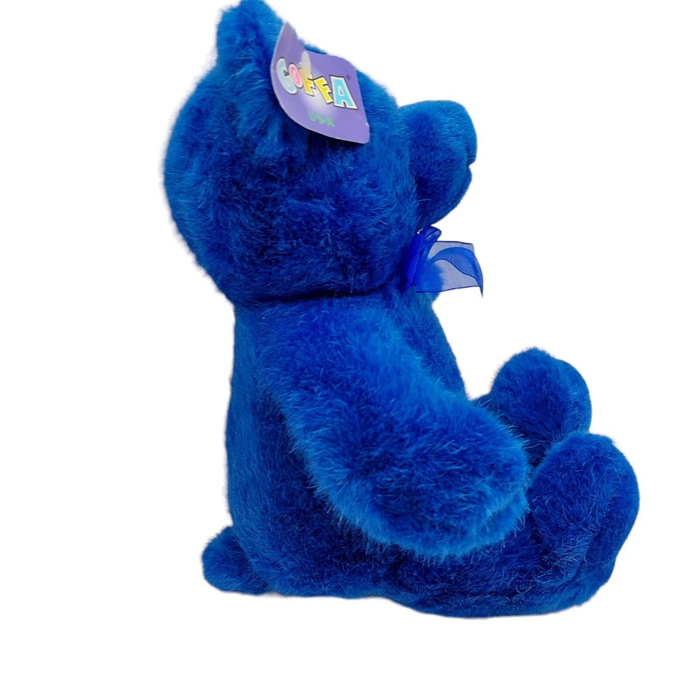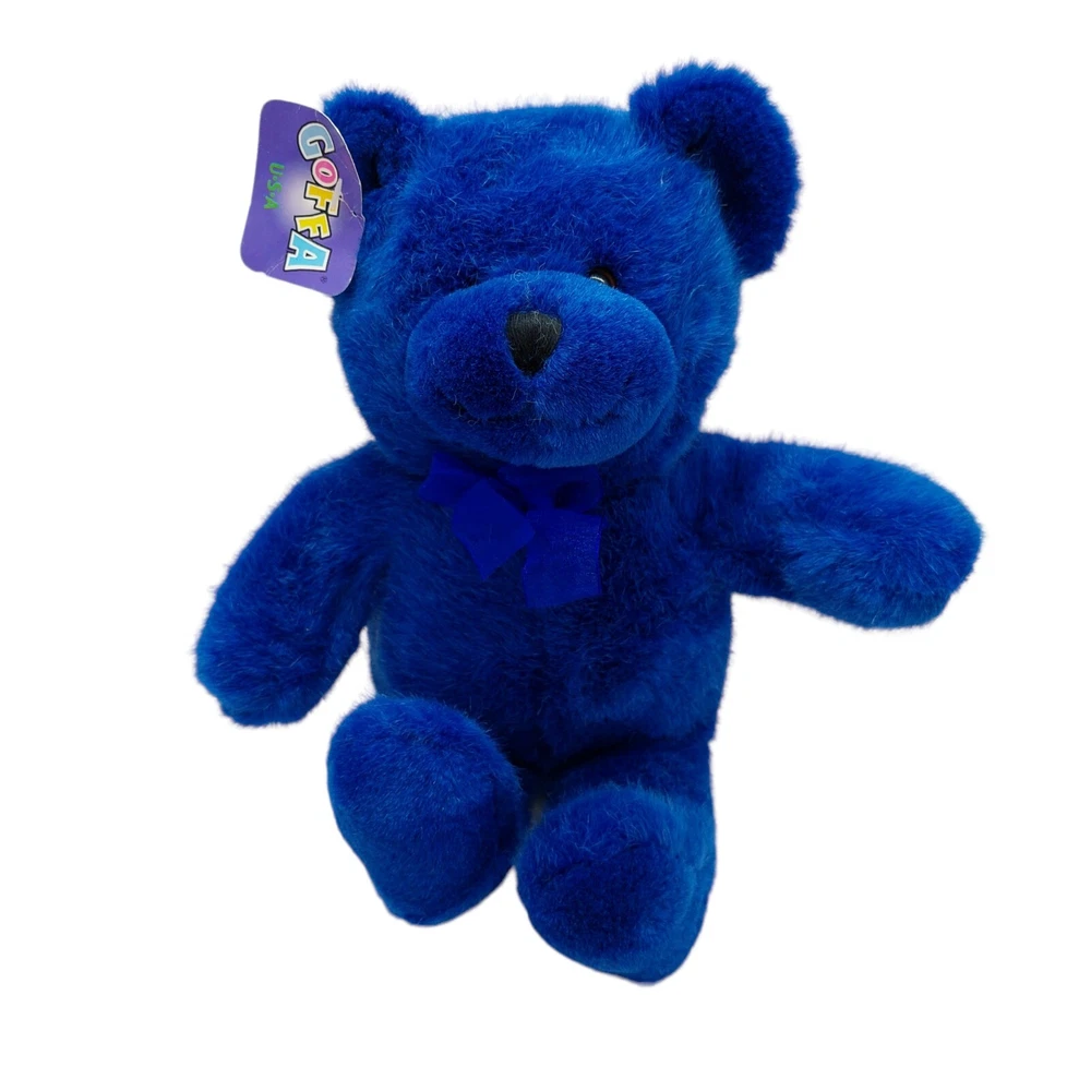 Unit of Sale:Single UnitFeatures:RetiredAnimal:Teddy bearHandmade:NoType:Stuffed AnimalUPC:Does not applyOccasion:All OccasionsTheme:AnimalsMaterial:PlushFranchise:GoffaEye Color:BrownNumber of Items:1Brand:GoffaCharacter:BearCollection:GoffaPersonalize:NoSize:10 inAntique:NoOriginal/Licensed Reproduction:Originalgtin13:Does not applyItems Included:Bow, TagBear Color:BlueAnimal Species:Bear