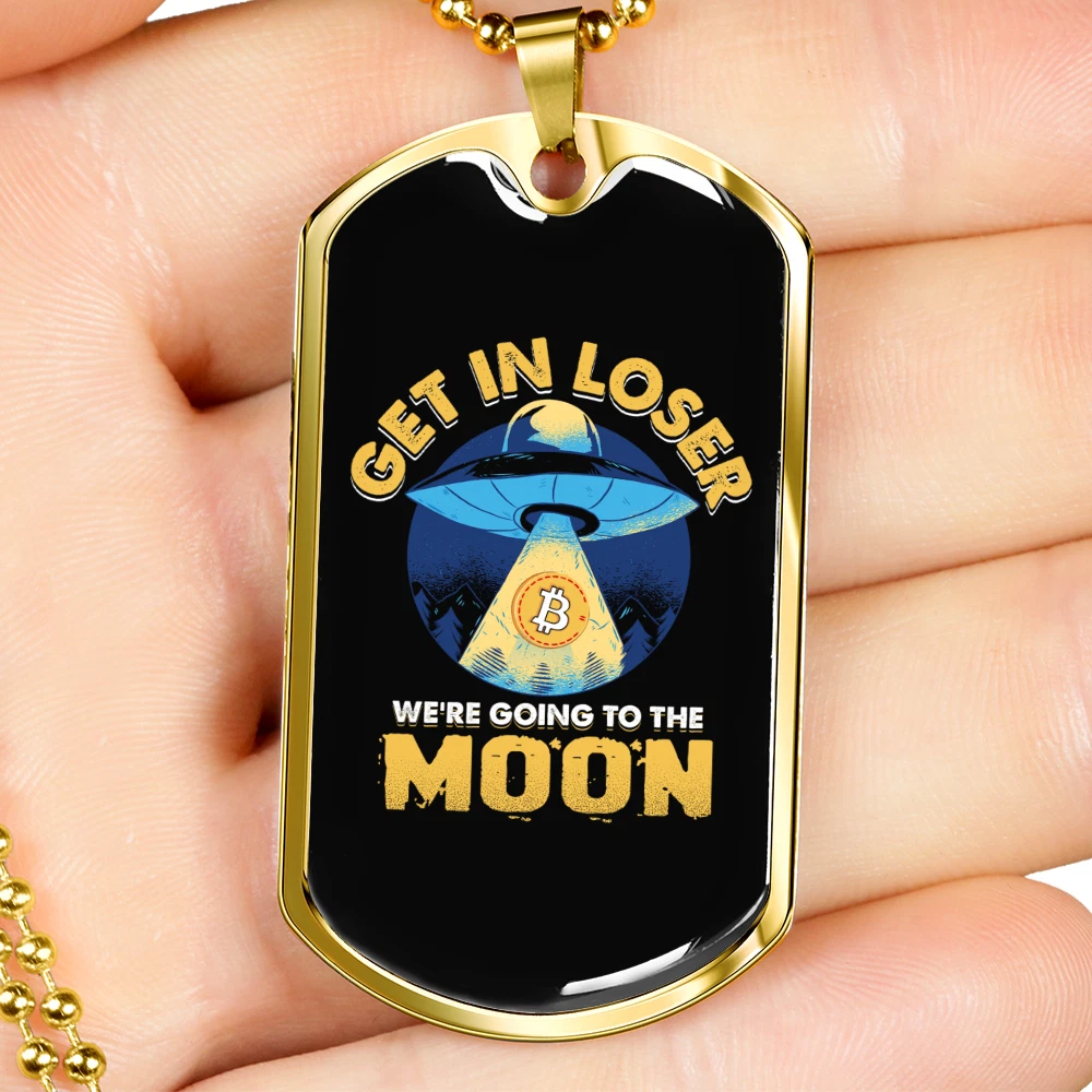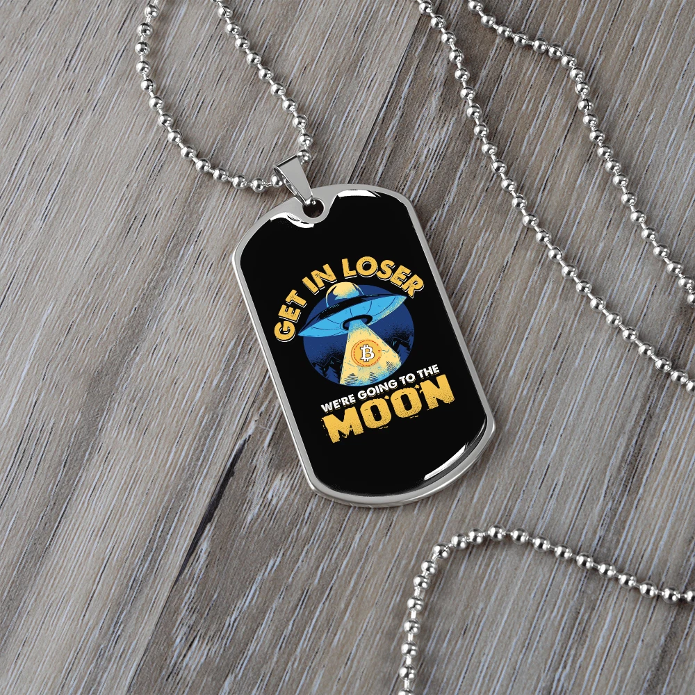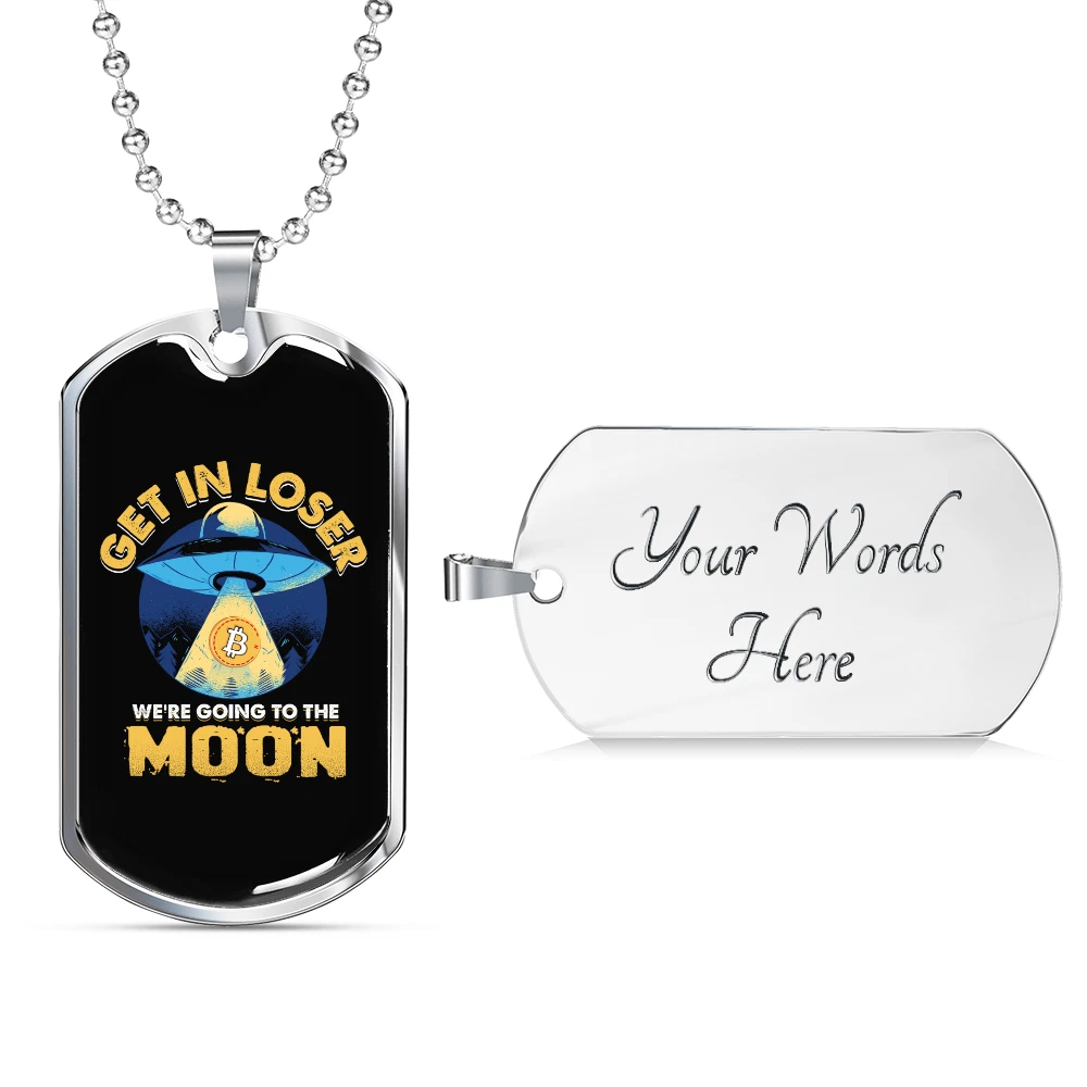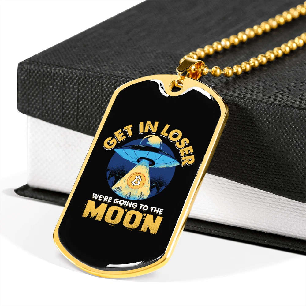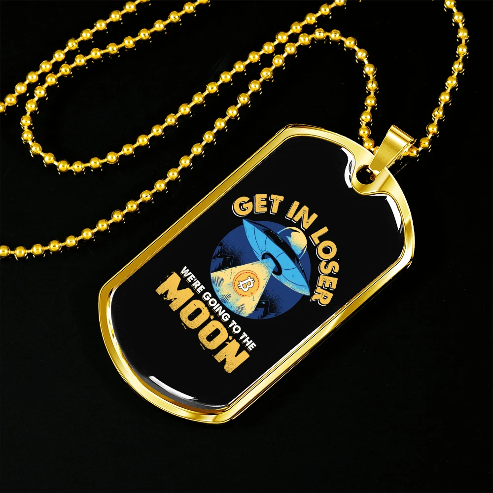 Going to Moon Necklace Stainless Steel or 18k Gold Dog Tag 24"