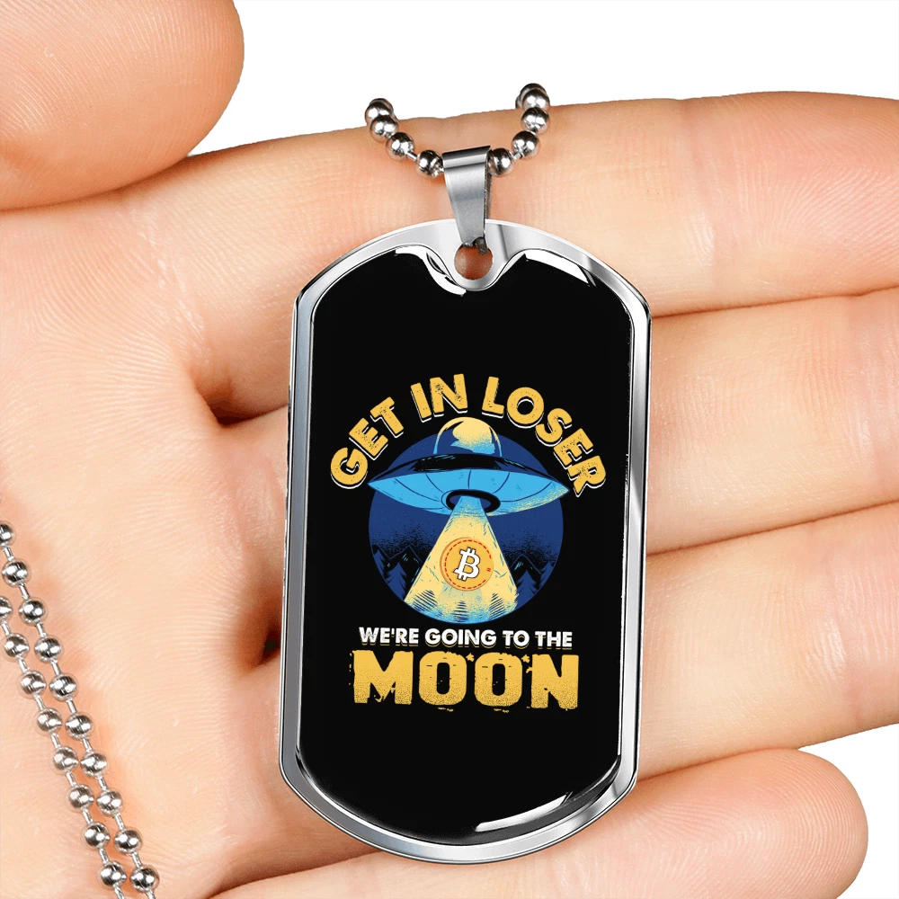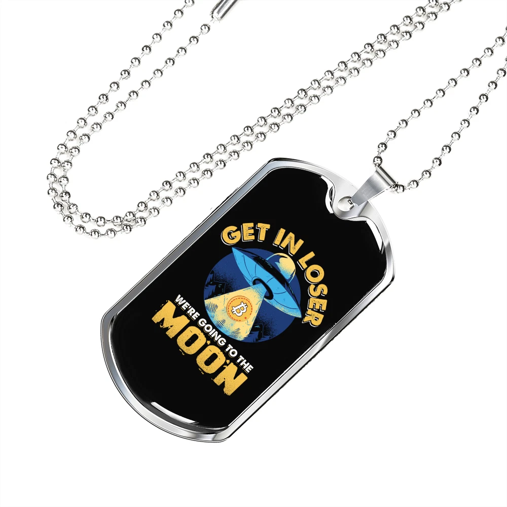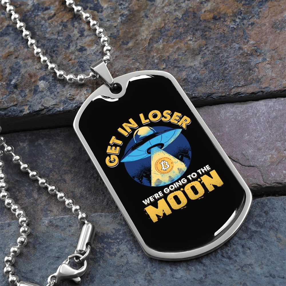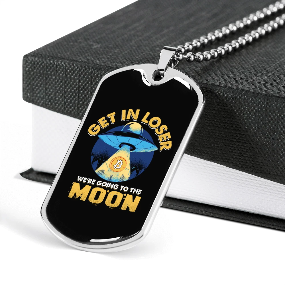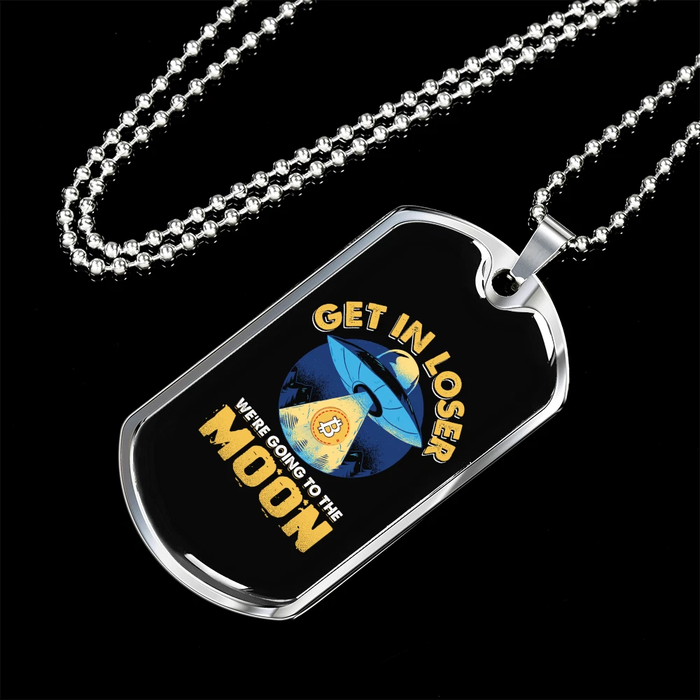Going to Moon Necklace Stainless Steel or 18k Gold Dog Tag 24"
