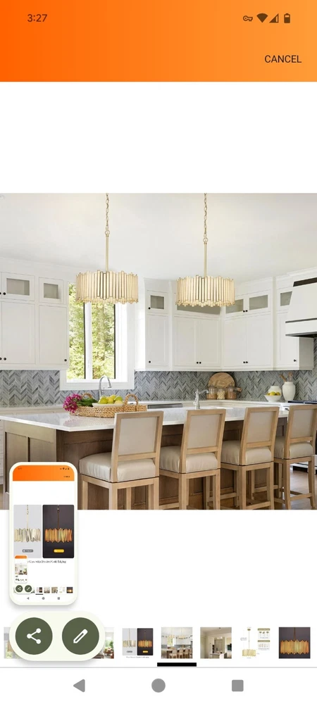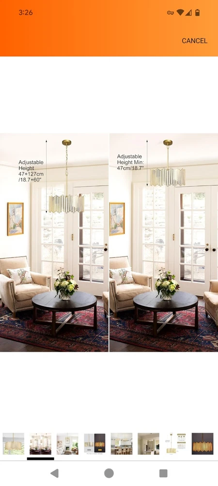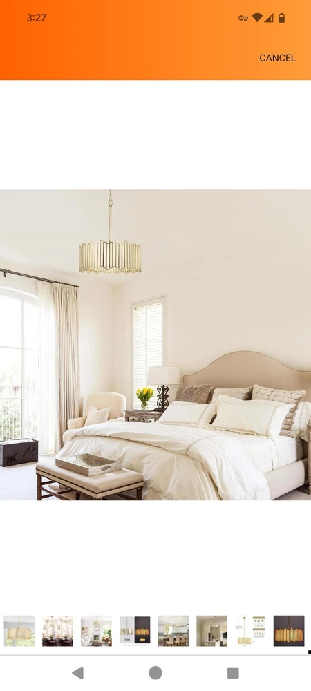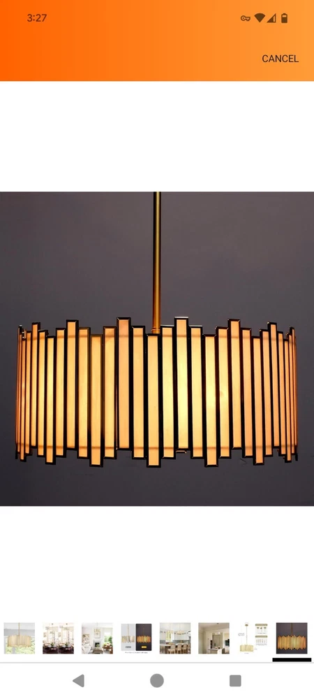 Listed on Amazon for $194.99 Gold Chandelier 4-Light, Pendant Lighting Fixture with Tiffany Glass Shade, 16” Brand Wrlmfy Color Gold Material Glass, Metal Style Mid-Century Modern Light fixture form Chandelier Room Type Foyer, Dining Room, Entryway, Kitchen Island, Bedroom, Stairwell, Living Room, Cottage, Hotel, Farmhouse, Villa, Cafe Bar, Restaurant Foyer, Dining Room, Entryway, Kitchen Island, Bedroom, Stairwell, Living Room, Cottage, Hotel, Farmhouse, Villa, Cafe Bar, Restaurant GOLD DRUM CHANDELIER - Tiffany drum chandelier features a metal shade and white glass finish. This bright, hanging lamp will beautifully illuminate your home, the striking chandelier is a contemporary art piece that gives off strong modern and artistic vibes. ADJUSTABLE CHAIN for SPACE - Round Hanging Light Size: 16"Dia x 19"H. Canopy Size: 5"D x 1"H, available for flat, slightly sloped, or vaulted ceilings. The 59" height chain is adjustable to be placed in your desired position from Min 22" to Max 79" from ceiling to bottom. DIMMABLE & BULB REQUIREMENT - This modern chandelier is dimmable when works with a dimmer switch and dimmable bulbs (BOTH NOT INCLUDED). The chandelier needs 4 x E12 (Base) max 40W / TypeB (Bulb Shape) bulbs, and the working voltage should be 120V. EASY TO ASSEMBLE - The 4-Light drum pendant lighting only works indoors and in a dry environment. It arrives part assembled, all mounting hardware and detailed instructions are included for quick and easy installation. Please carefully read the user manual before you are ready to install. CUSTOMER CARE - White chandelier light fixture fits for Bedroom Dining Room Kitchen Entryway Living Room.