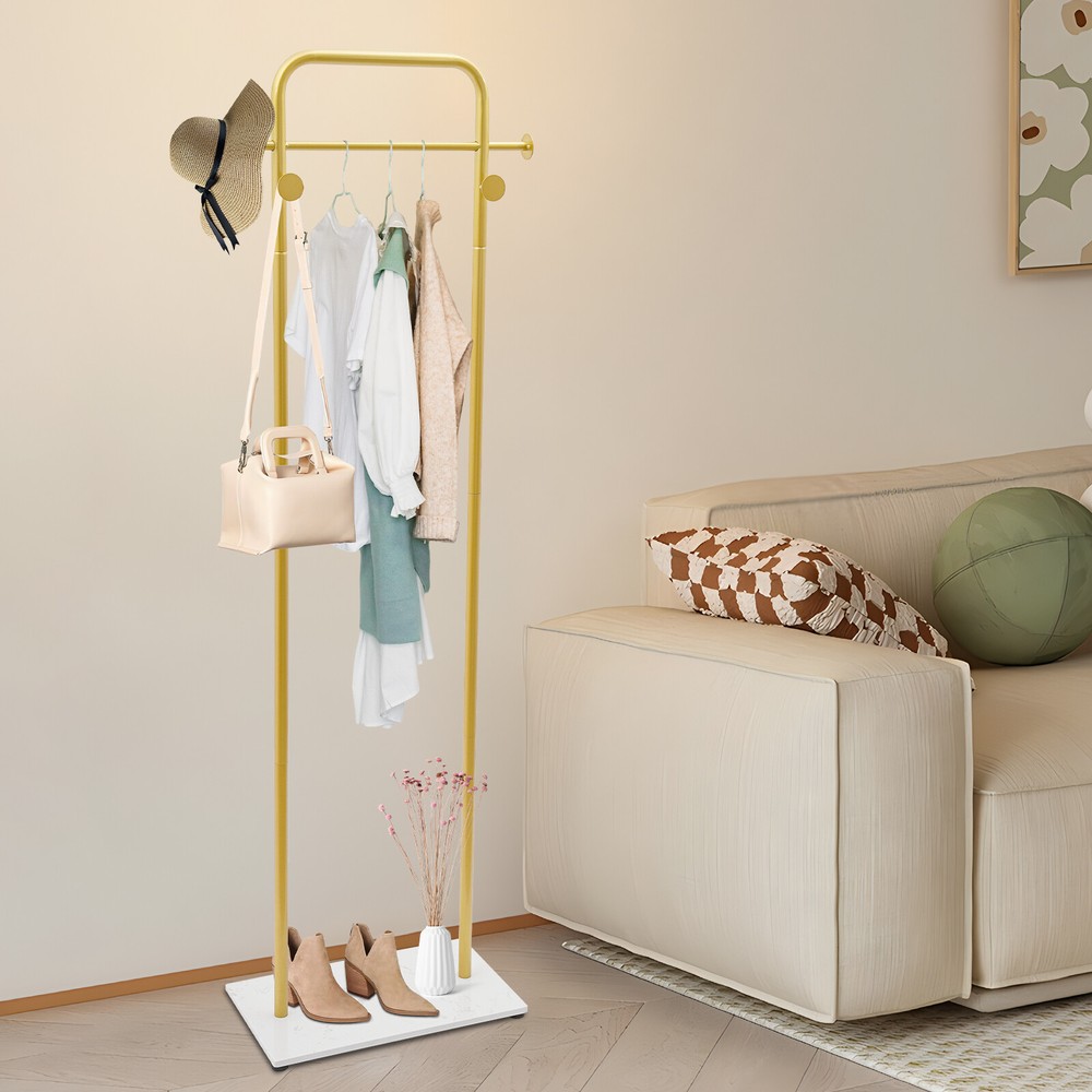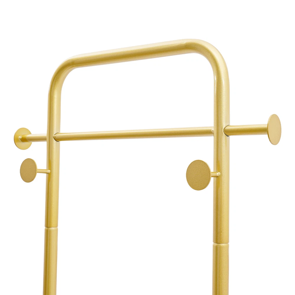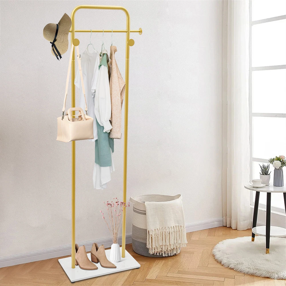 Gold Coat Rack Clothes Hanger Stand Free-Standing Organizer Shelves Load 50lbs Description A sturdy and exquisite clothes rack keeps your clothes in order and adds charm to your store or bedroom. Our product is made from high-hardness carbon steel and adopts a rectangular construction for high stability and load-bearing capacity. With its simple and nice appearance, this rack will be your ideal assistant in daily life! Key Features Sturdy and Durable: It adopts high-quality carbon steel with a high-temperature nano baking paint process to make this product high-strength and not easy to deform, ensuring long service life. Thoughtful Design: The appropriate height makes your coat drape properly and reduces the wrinkling of clothes. The open design shows clothes elegantly and allows you to access/hang clothes faster and easier than traditional closets . Large Storage Space: The top hanging rod and 4 hooks can hang your hats, bags, scarves, coats, outfits, dresses, suits, etc. to meet your daily needs. You can also place your boxes, shoes, heels, or even small plants on the bottom base . Excellent Load Capacity: With a rectangular structure, large base, and high-strength material, it can bear the weight of 50 lbs, which allows for more clothes to be hung. Neat Space: It will keep your bedroom or entrance clean and tidy without piles of clothes, while also displaying clothes distinctively and beautifully, making it a great addition to organizing your home. Nice Decoration : The simple shape design and smooth lines highlight the geometric beauty, so it can be easily integrated into a variety of decoration styles and the gold color gives the dress a sleeker texture. Simple Installation: The simple structure, complete accessories, and an English installation diagram make this product easy to install. You can enjoy the installation fun. Easy to Clean: Thanks to the simple construction and smooth surface, you can easily wipe it down with a damp rag and keep it shiny! Details Round Edges: The rounded edges and corners are not only more comfortable to touch but also care for your clothes and skin. Anti-slip Pads: 4 anti-slip pads on the bottom ensure stability when the product is standing and also avoid scratching your floor. Application It is suitable for hallways, entryways, bedrooms, bathrooms, closets, laundry rooms, garages, boutiques, shops, clothing stores, or balconies for hanging clothes, suits, scarves, bags, etc. Specification Color: Gold Style: Modern Shape: Rectangular Material: Carbon Steel Assembly Required: Yes Mounting Type: Floor Standing Surface Treatment: High-temperature Nano Baking Paint Load Bearing: About 22.68kg/50lbs Gross Weight: 8 kg/17.64 lbs Net Weight: 7.8kg/17.19lbs Package Size: 62*38*22cm/24.4*14.96*8.66 in Product Size: 49.78*30*174.75cm/ 19.6*11.8*68.8 in Package Included 1* Clothes Rack 4* Pads 1* English Installation Diagram All Accessories for Installation Notes Please note that this product does not contain any clothing. Please follow the English installation diagram to assemble this product. Please allow the slight color difference caused by the shooting light and 1-3 cm error due to manual measurement, and make sure you do not mind before ordering. Payment Delivery details Terms of sales About us Contact us Payment We accept ebay payment 。 Fees such as import duties, taxes are not included in the item price or shipping costs. These charges are the buyer's responsibility. Delivery details Shipping: 2-9 working days to: USA Terms of sales We maintain high standards of excellence and strive for hundred percent customer satisfaction. Feedback is very important to us. We hope that you contact us immediately before you give neutral or negative feedback, so that we can address your concerns. It is impossible to address issues if we do not know about them! About us Your satis faction is our ultimate goal. We work hard to earn your trust and future business. Our certified technicians have tested each item before shipping. The unit comes with 1 year limited warranty on all manufacturing defects. a) If you receive a defective item, you may return it or ask for a discount. Please contact us within 14 days after you receive the package. b) What you returned must be intact and in its original packaging as re? u. Customer is responsible for shipping costs of the returned item. c) We will cover the cost of shipping back t with the shipping rate indicated in the registration page. We will send you a new unit or refund the full payment you paid. Thank you. Contact us Business Hour Business Hour: Monday To Friday: 8:30 AM to 5:00 PM (Beijing China time) Due to time zones, our reply to your questions may not be immediately. But within above working time, we will reply your email within 24 hours. If it's non-workdays, please kindly be patient and wait till Monday. Please contact us with ebay message. Please feel free to contact us if you have any questions. Monday To Friday: 8:30 AM to 5:00 PM (Beijing China time) Due to time zones, our reply to your questions may not be immediately. But within above working time, we will reply your email within 24 hours. If it's non-workdays, please kindly be patient and wait till Monday. Please contact us with ebay message. Please feel free to contact us if you have any questions. Brand Unbranded Type Coat & Hat Racks Color Gold Style Modern Shape Rectangular Material Carbon Steel Assembly Required Yes Mounting Type Floor Standing Surface Treatment High-temperature Nano Baking Paint Load Bearing About 22.68kg/50lbs Gross Weight 8kg/17.64 lbs Net Weight 7.8kg/17.19lbs Package Size 62*38*22cm/24.4*14.96*8.66 in Product Size 49.78*30*174.75cm/19.6*11.8*68.8 in