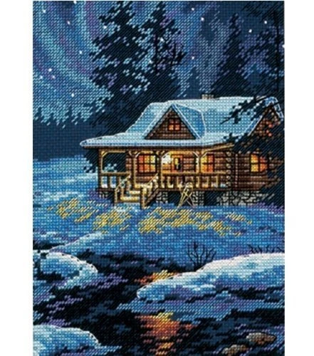 Stitch a cozy piece of DIY wall art with the Gold Collection Moonlit Cabin Counted Cross Stitch Kit! This advanced cross stitch pattern features a serene cabin glowing in a snowy forest, and uses full and half stitches to create stunning depth and detail specifically designed for experienced needlecrafters. Includes 18 count navy blue Aida, cotton thread, thread sorter, needle, and easy instructions. Completed cross stitch kit measures 5'' x 7''. Moonlit Cabin advanced counted cross stitch kit includes 18 count navy Aida, cotton thread, thread sorter, needle, and easy instructions. Completed cabin cross stitch kit measures 5'' x 7''. This advanced counted cross stitch pattern features a winter cabin glowing on a cold, snowy night. Specifically designed for experienced needlecrafters, this charming cross stitch pattern uses full and half stitches to create realistic shadows and gorgeous detail. Frame and hang your completed cabin cross stitch kit for a stunning piece of DIY wall art!