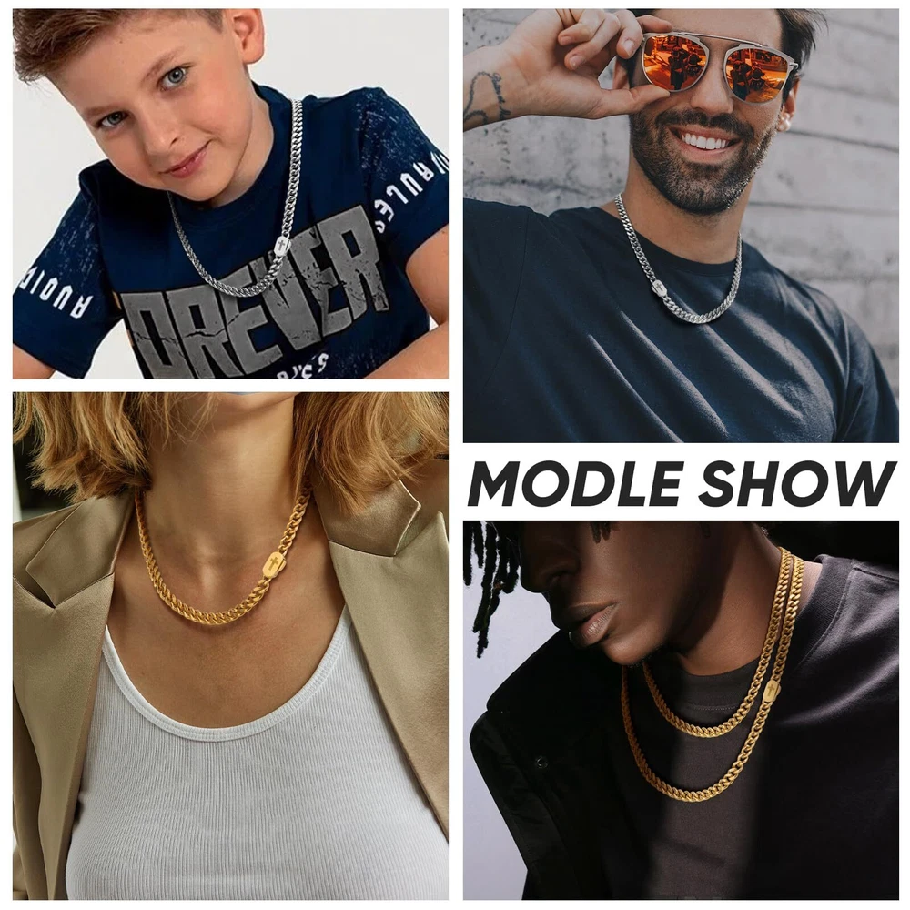 Cross Chain for Men: stainless steel chains for men crafted with high-quality craftsmanship, this Cuban chain features a robust design and a convenient special Snap Hook. Perfect for adding a touch of hip-hop flair to your outfit. Size : Available in 7mm in width and 20/24 inches in length, this silver/ gold plated stainless steel chain is a versatile accessory for men. Thick Stainless Steel Chain for Men: Made of sturdy 316L stainless steel and etch with a corrosion-resistant cross symbol, this 7MM chain is both durable and hypoallergenic, making it safe and comfortable for all skin types. Jewelry Gift for Men : Surprise your loved ones with this unique gift on Father’s Day, birthdays, Christmas, or any special occasion. This Cuban link chain is the perfect accessory for any casual day or special event. Warranty & Promise : Enjoy peace of mind with our 24-hour customer service and 90-day money-back guarantee. Shop confidently and upgrade your accessory game with this Men's Gold Cuban Link Chain.
