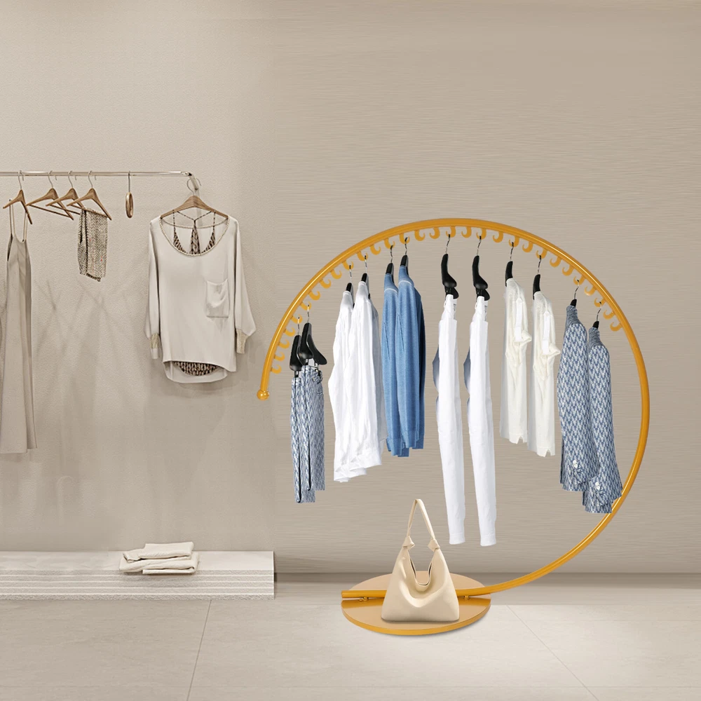 Gold Freestanding Clothing Display Rack Modern Coat Rack W/ 30 Moon-shaped Hooks Welcome to our store~ Description The coat rack measuring an ample 59.05in in height, is a testament to elegant functionality and durability designed for spaces demanding both style and practicality. Crafted with meticulous attention to detail, this freestanding coat rack not only serves as a clothes rack but also stands as a modern decoration that effortlessly complements any setting, from the sophistication of a boutique to the warmth of a modern household. Key Features Sturdy and Durable: This product is made of high-quality iron with a high-temperature baking paint process, which has good wear resistance , rust resistance , and a long service life. Fashionable Style: The C-shaped exterior design, classic gold color, and full, even, vibrant hue make this stylish and elegant product pair well with your furniture style. Strong Load-bearing Capacity: The solid construction, thickened base, and strong connection between the parts make this product withstand a heavy load of 551.15 lbs , you can store your daily clothes with confidence. Large Capacity: The 30 moon-shaped hooks are enough for your daily storage needs to avoid stacking your clothes, making it easier to place and access items. Moreover, the round base can hold shoes (not included), giving you more organized storage. Multi-function: This product can be used as a display rack, storage rack, or drying rack. You can not only hang skirts, pants, jackets, shirts but also bags, hats, scarves, towels and ties. It is suitable for a variety of scenes and needs. Suitable Height: It is high enough (59.05in) to prevent most clothes from touching the floor or getting dirty, so you can hang your pants, long skirts, jackets (not included), etc. with confidence. Simple Installation: The simple structure and complete accessories allow even novice installers to install it quickly and accurately. Easy to Clean: Thanks to the smooth surface, simple structure, and open design, you can easily wipe off the dirt on it with a soft cloth (not included). Ideal Gift: With a beautiful appearance and good performance, it would be a wonderful surprise for your wife, mother, daughter, friend, or loved ones. Details Sturdy Base: The round base (23.62 in) can stabilize this product well and prevent it from tipping over. Smooth Edges: The smooth edges not only add to the aesthetics of the product but also improve the safety of use. Application It can be used to hang jackets, scarves, hats, school bags, handbags, purses, suits, costumes, place shoes, and so on. It is suitable for retail stores, boutiques, children's stores, clothing stores, dormitories, bedrooms, living rooms, entrances, children's rooms, laundry rooms, apartments, hotels, dormitories, studios, dance studios, and other places. It can be used as a display rack, storage rack, or drying rack. Specifications Color: Gold Style: Modern Material: Iron Shape: C-shape Process: High-temperature Baking Paint Assembly Required: Yes Mounting Type: Free Standing Recommended Uses For Product: Clothes Total Load Capacity: 250kg/ 551.15 lbs Number of Hooks: 30 Product Size(D*H): 1.5*1.5m/ 4.92 ft Base Diameter: 60cm/ 23.62in Package Size: 155*65*7.5cm/61.02*25.59*2.95in Gross Weight: 8kg/17.64lbs Net Weight: 7.5kg/16.53lbs Package Included 1* Coat Rack 4* Screws Notes Please note that this product does not include any clothes. Please check the size carefully before ordering. Please do not expose the product to direct sunlight for extended periods of use. Please do not touch the product with sharp items. Please allow the slight color difference caused by the shooting light and 1-3cm error due to manual measurement, and make sure you do not mind before you order. Payment Delivery details Terms of sales About us Contact us Payment We accept ebay payment 。 Fees such as import duties, taxes are not included in the item price or shipping costs. These charges are the buyer's responsibility. Delivery details Shipping: 2-9 working days to: USA Terms of sales We maintain high standards of excellence and strive for hundred percent customer satisfaction. Feedback is very important to us. We hope that you contact us immediately before you give neutral or negative feedback, so that we can address your concerns. It is impossible to address issues if we do not know about them! About us Your satis faction is our ultimate goal. We work hard to earn your trust and future business. Our certified technicians have tested each item before shipping. The unit comes with 1 year limited warranty on all manufacturing defects. a) If you receive a defective item, you may return it or ask for a discount. Please contact us within 14 days after you receive the package. b) What you returned must be intact and in its original packaging as re? u. Customer is responsible for shipping costs of the returned item. c) We will cover the cost of shipping back t with the shipping rate indicated in the registration page. We will send you a new unit or refund the full payment you paid. Thank you. Contact us Business Hour Business Hour: Monday To Friday: 8:30 AM to 5:00 PM (Beijing China time) Due to time zones, our reply to your questions may not be immediately. But within above working time, we will reply your email within 24 hours. If it's non-workdays, please kindly be patient and wait till Monday. Please contact us with ebay message. Please feel free to contact us if you have any questions. Monday To Friday: 8:30 AM to 5:00 PM (Beijing China time) Due to time zones, our reply to your questions may not be immediately. But within above working time, we will reply your email within 24 hours. If it's non-workdays, please kindly be patient and wait till Monday. Please contact us with ebay message. Please feel free to contact us if you have any questions. Highlights Long service life, stable performance, High quality W/ warranty! Warranty 3-year Warranty Features Nice and Practi