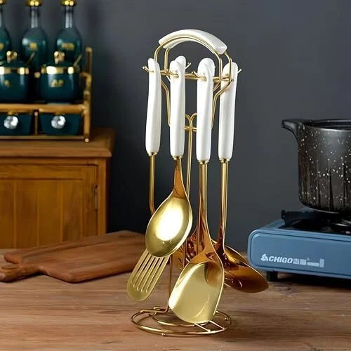 Return Policy Fast Delivery Trusted seller Gold Kitchen Utensils,7pieces Gold Cooking Utensils Set,Kitchen Tools Set With Utensil Holder, gold kitchen accessories,Dishwasher Safe, Easy To Clean(White) Product Description Kitchen utensils set——1 utensils rotating holder, 1 spatula, 1 skimmer slotted spoon, 1 slotted spatula tunner, 1 large spoon, 1 pasta spoon, 1 ladle. the all metal cooking utensil is safe to use for any type of food.forged in one-piece with no welding or stress points, sturdy and durable Mirror polish finish——it creates a dazzling appearance on this set of green cooking utensils set. don’t hide them. display their magnificence with this high quality utensils holder. this set is polish with mirror finish instead of other brand with dull polish finish. raise the standard in your kitchen by adding the unique effects stainless steel mirror finish polished utensil set to your tools. once you use this incredible set you won’t want to use anything else Excellent shape and design——each spatula and spoon is dishwasher safe. 304 stainless steel thickened utensils holder for countertops, 360 degrees design - utensils will be kept organized, collected, and within reach.this utensils set is made of high quality stainless steel, strong rust resistant, lead free. this utensils set is non-magnetic instead of other brand catchs magnetic. this material is food grade, healthy for daily use. the royal gold utensils are perfect for wedding, parties Gold kitchen utensils set——from novice to professional cooks, green kitchen utensils setwith holder would be a welcome addition to any kitchen and a great gift for birthdays, holidays, housewarming and more; perfect complement for gold kitchen decor Customer satisfaction ——purchase this gold utensils set with peace of mind; feel free to contact our friendly support team for a hassle-free replacement if you are not 100% satisfied Exterminate flying insects Shipping Returns Payment Shipping Shipping is FREE to all addresses other than APO/PO boxes in the lower 48 states. All our stock ships from US-based warehouses. Shipped via USPS or UPS (depending on location and package weight) Unless stated otherwise, all orders will ship within 24-72 hours of your payment being processed. Check our feedback to see the great reviews of FAST shipping we offer. Returns Seller does not accept returns Payment We currently accept payment via eBay managed payments only. Once payment is cleared, we will dispatch your shipment within 1-3 business days. Please refer to the "Shipping" tab for more information regarding shipping speed to your destination.