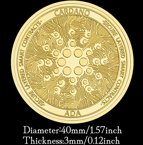 Gold Plated Ada Cardano Crypto Cryptocurrency Collectible Coin Description Coin Size: 40mm*3mm (1.57"x0.12") Material: Iron Style: Non-currency coin Theme: Crypto coin Packing: 1 piece with plastic case Usage: Art & Collectible, business gift, Home-decoration gifts Note: 1 . Please allow 1 - 2mm error due to manual measurement. Please make sure you do not mind before you buy. 2 . Due to the difference between different monitors, the picture may not reflect the actual color of the item.