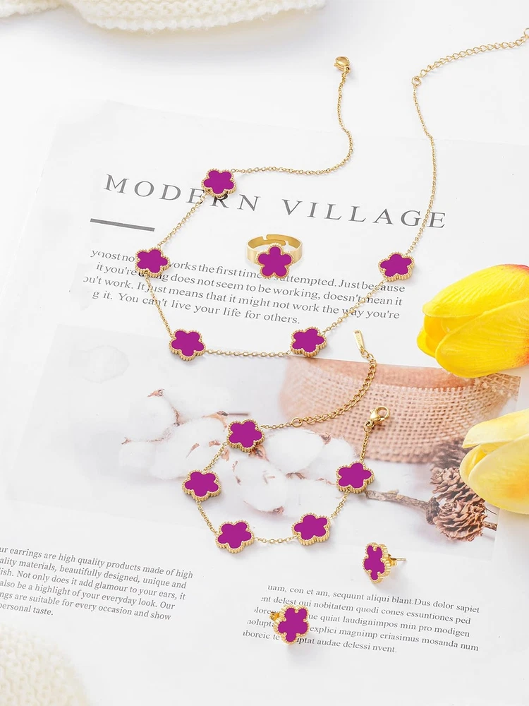 Absolutely love this lucky five-leaf clover set! The gold plating has a beautiful shine and the pieces feel surprisingly high quality. Perfect for everyday wear or gifting - brings a touch of elegance and good fortune to any outfit.