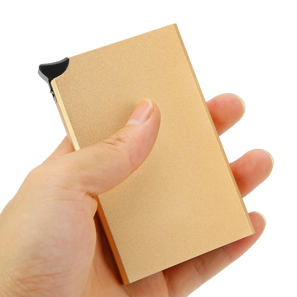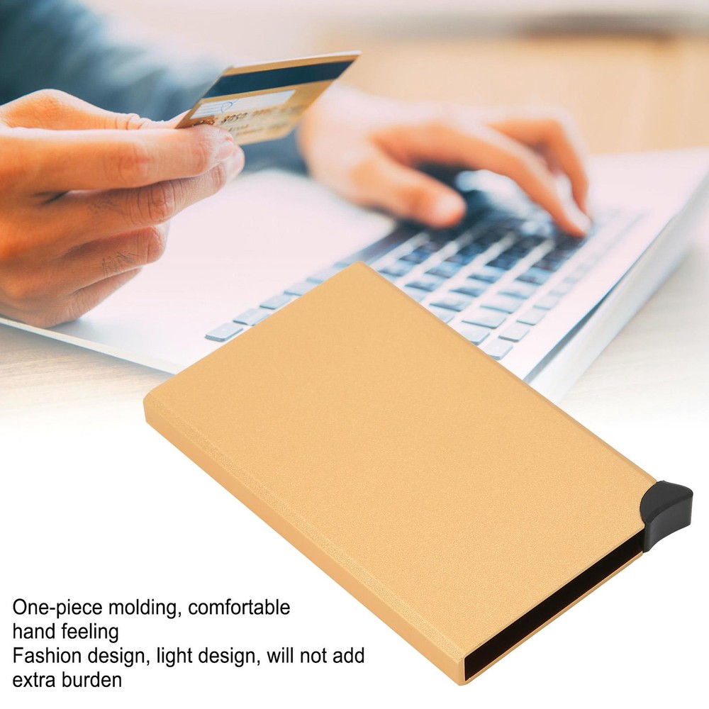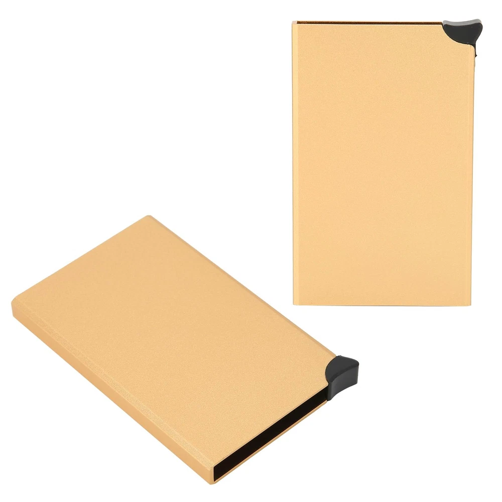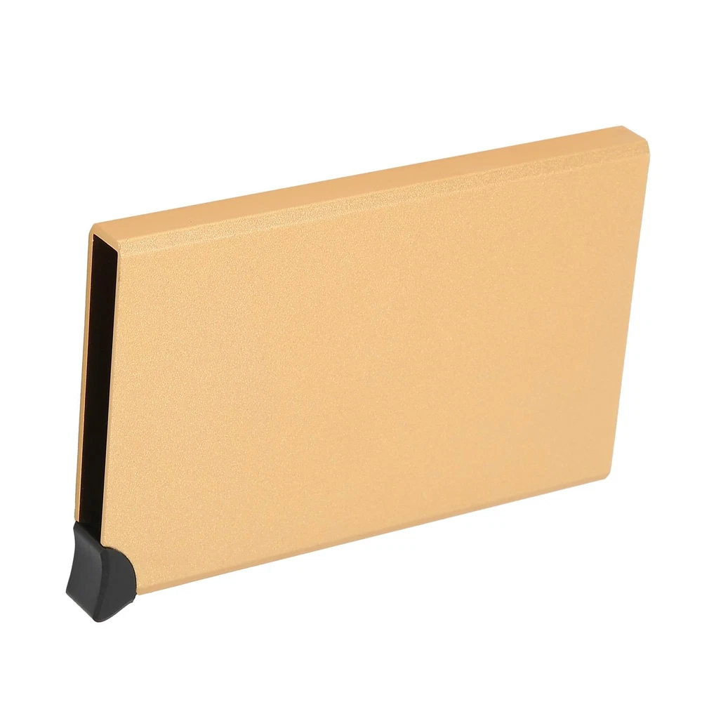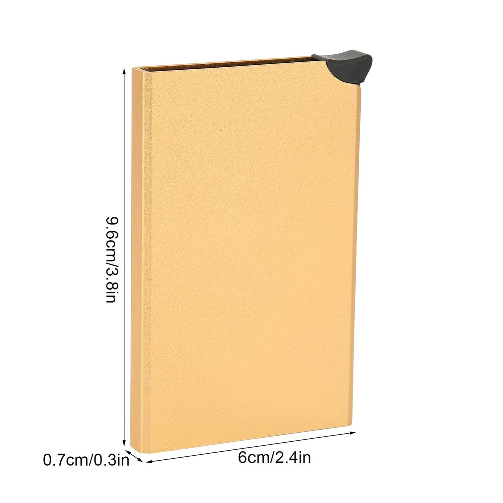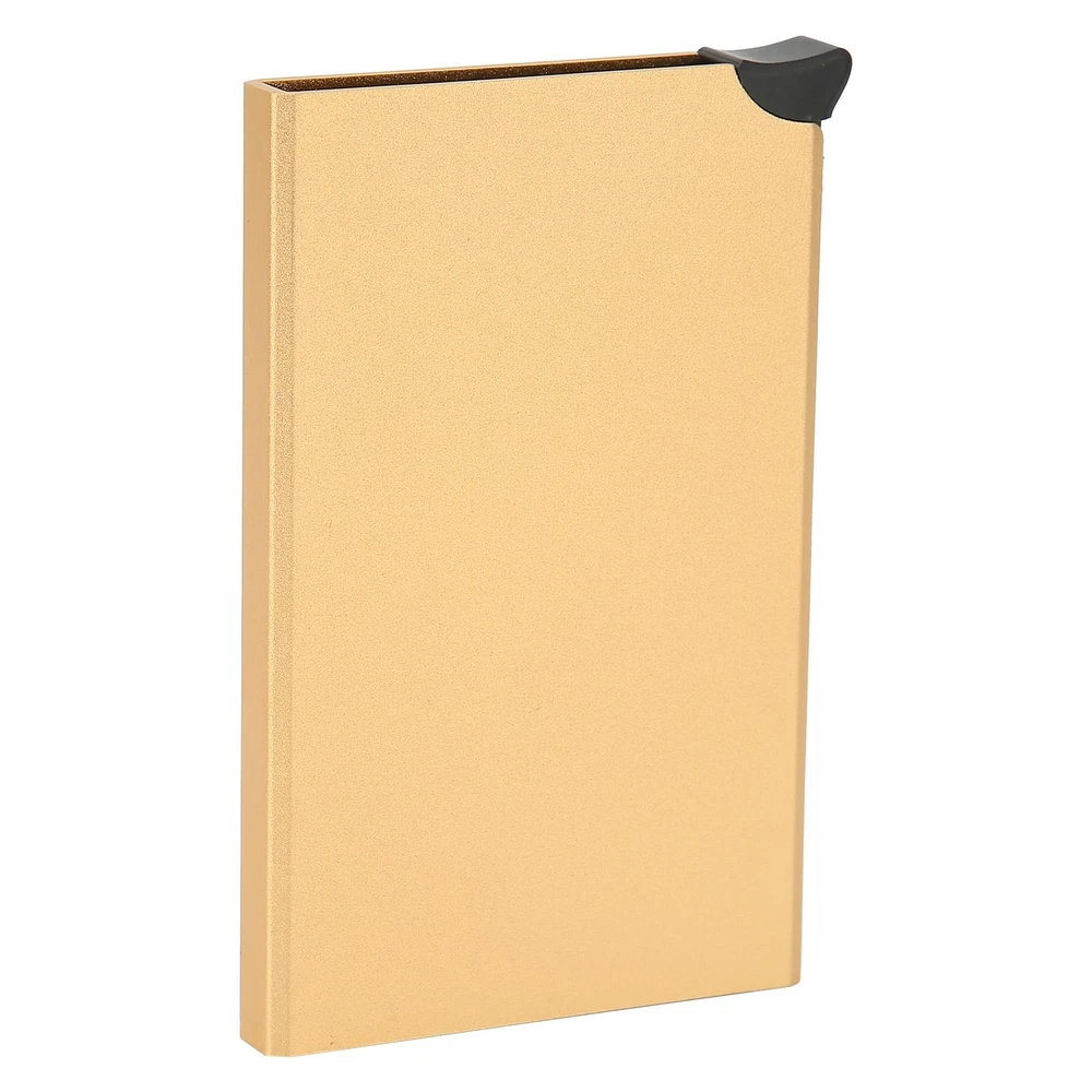 This sleek gold card holder is both stylish and functional! The RFID blocking keeps my cards safe, and the pop-up design makes access quick and easy. The aluminum alloy and PU material feel premium, and it's surprisingly lightweight for daily carry. Perfect for keeping my cards organized while adding a touch of elegance—great for personal use or as a gift!