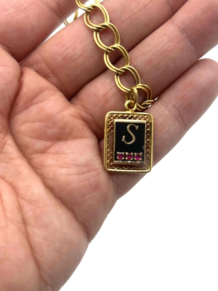 Gold S Initial Charm Goldtone Rectangular Pendant Chain Bracelet Add a personalized touch to your collection with this gold-tone initial charm bracelet. The rectangular pendant adds a unique flair, perfect for everyday wear or special occasions. this chain style bracelet is a timeless piece. Condition: Good condition. Size: Features: Initial charm, Gold-tone, Rectangular pendant, Unisex, Chain design Brand: Type: Bracelet Style: Chain Color: Gold Material: Gold Plated Zinc Alloy Measurements: See pictures. Keywords: Minimalist, Boho, Casual, Gift, Everyday, Modern, Accessory, Jewelry