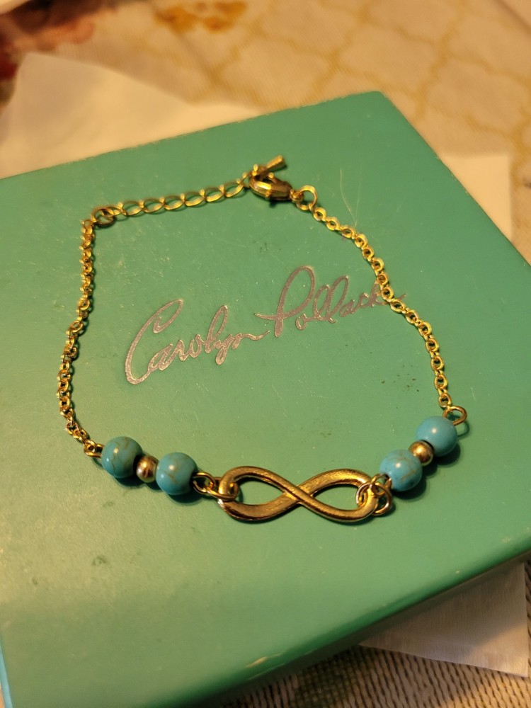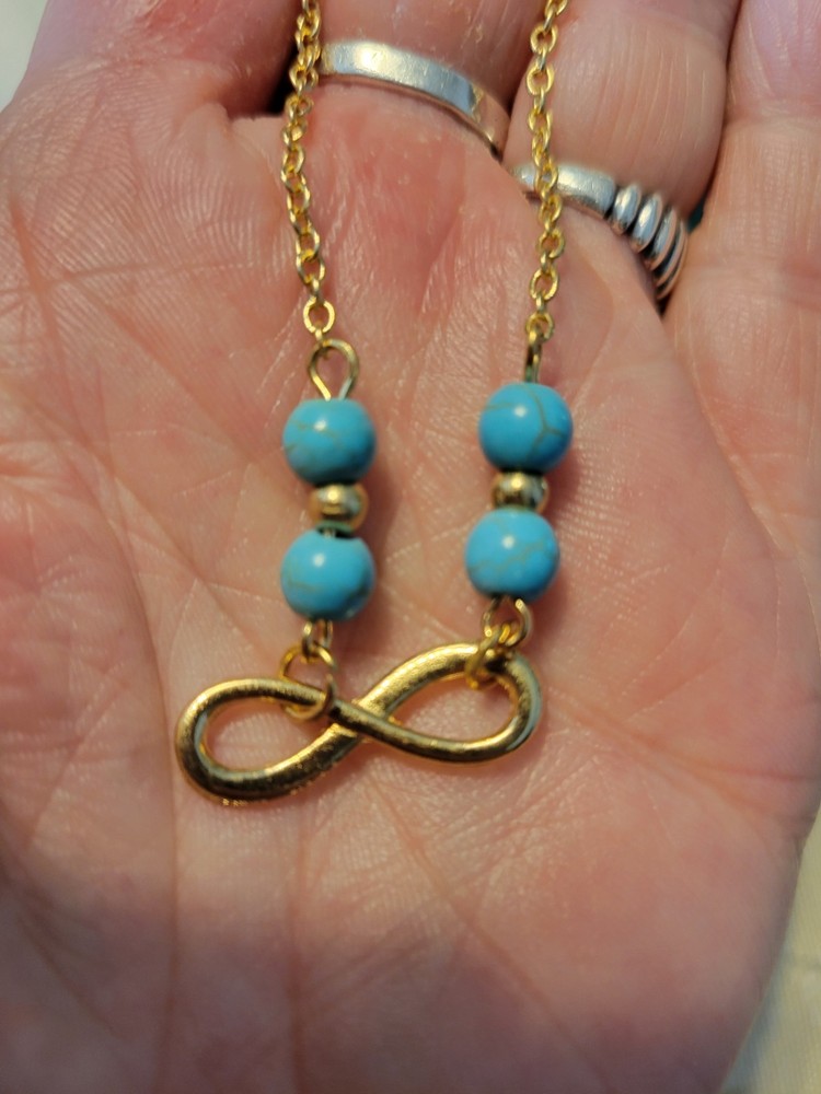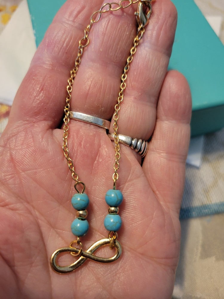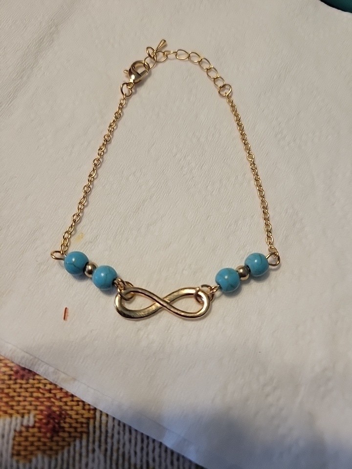 Gold Tone Infinity & Blue Bead Ankle Bracelet Anklet 9”