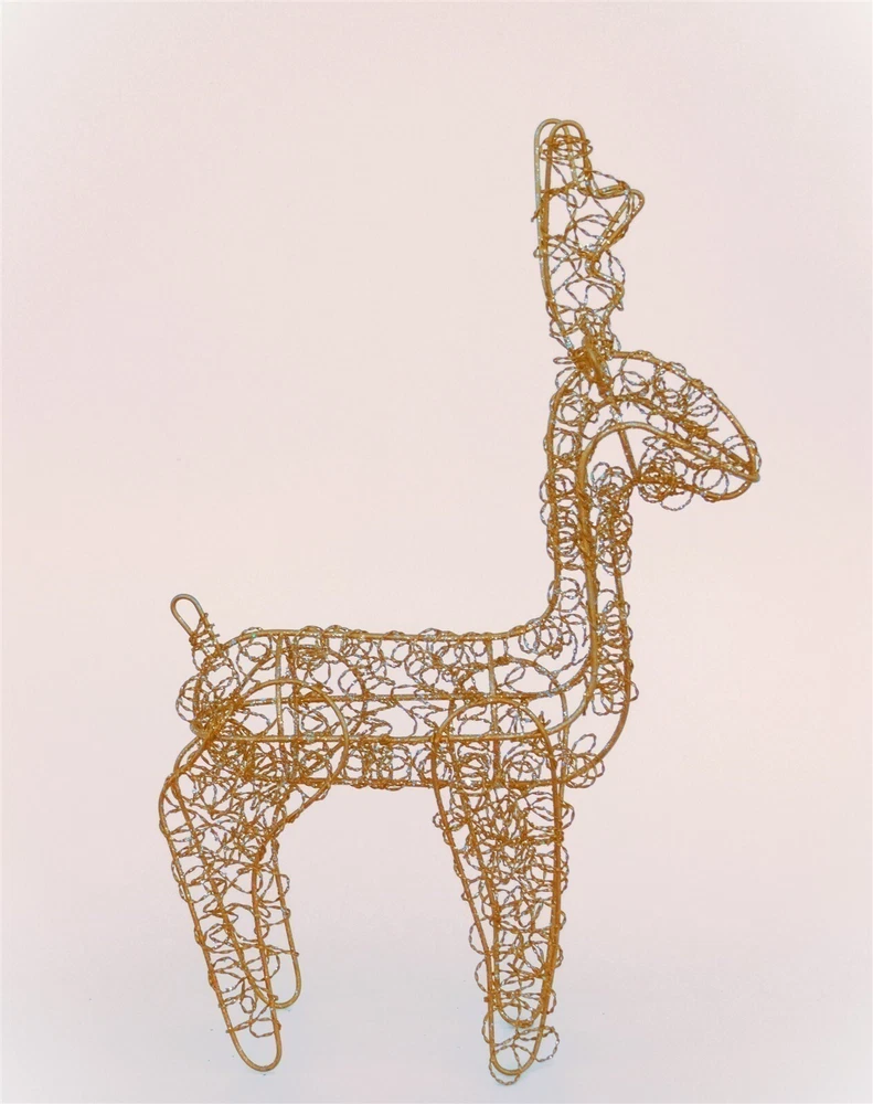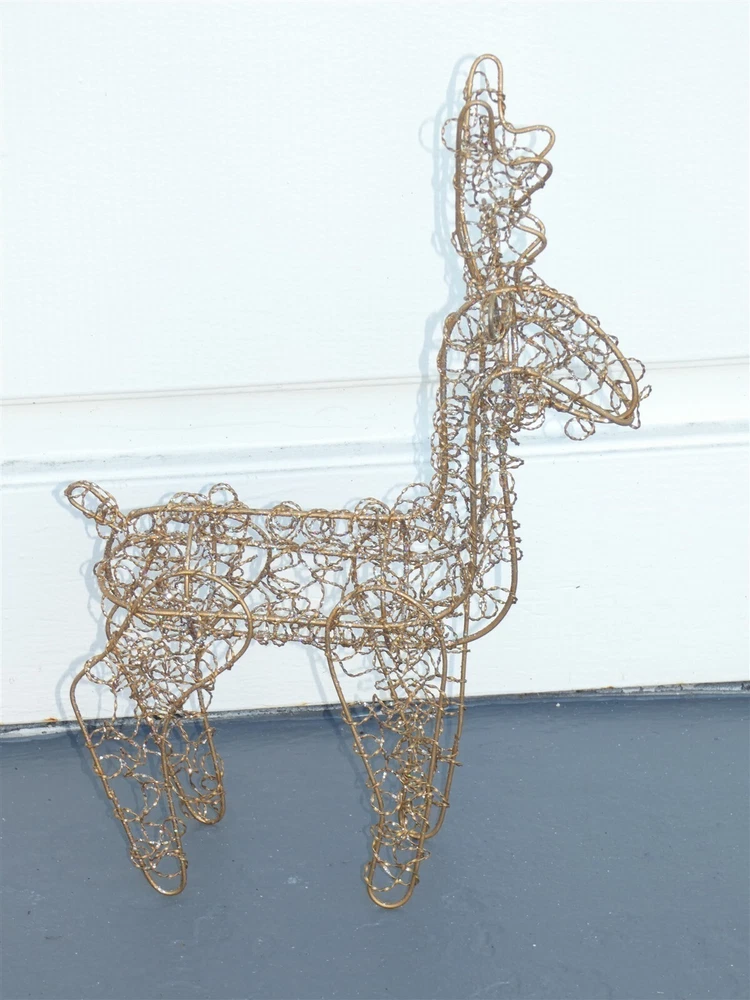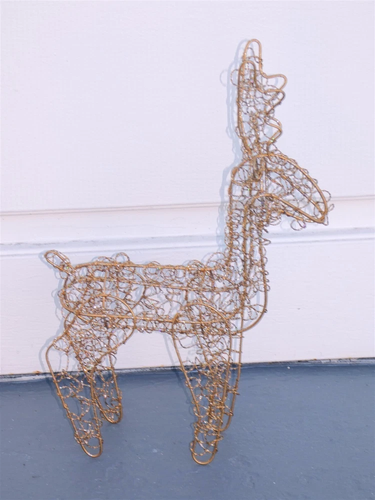Gold Tone Sparkle Twisted Metal Wire Decorative Reindeer Measures: 15 inches tall 10 inches wide Finish: Metallic with Glitter Color: Gold Material: Metal Bring Beautiful Sparkle to your holiday decor This unique reindeer is made out of twisted metal wire Very sparkly and eye catching Would make a great mantle or table decoration In Excellent condition Please see Photos for more description COMES FROM A SMOKE FREE HOME Any questions please feel free to ask me Thanks for looking! Come and see my other items Powered by SixBit's eCommerce Solution