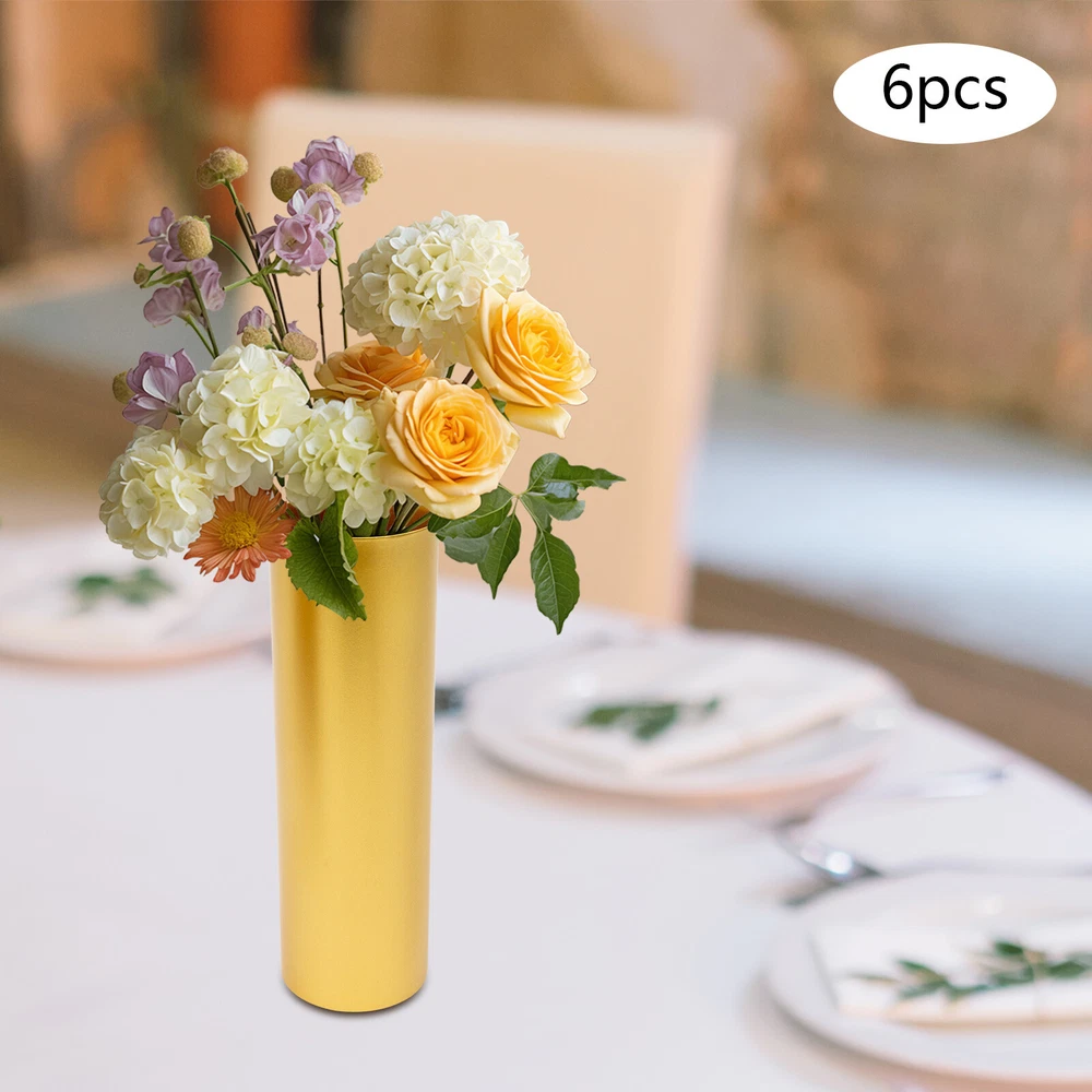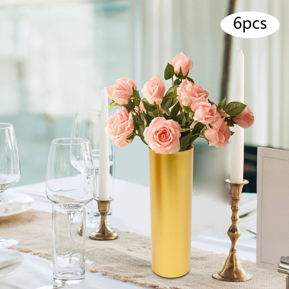 Description If you want to create a romantic atmosphere or like to arrange flowers, then our gold vases can help you to achieve it very well. It is made of iron that is strong, durable, not easy to break, and has a long life. Its golden look is very high-end and classy, and can be used to spice up your surroundings with flowers, wax, or candles. Key Features Sturdy and Durable: The item is made of iron with a baking paint treatment, making it resistant to deformation, oxidation, corrosion, rust, and high temperature. So it can remain practical and beautiful without frequent replacement. Wonderful Atmosphere: When you want a date, put flowers into it, the whole atmosphere will be more romantic, and your friend will certainly feel happy about that. Set of Six: The design of the six-piece Gold Vases for Centerpieces Wedding, Metal Flowers Stand, Vintage Trumpet Vase Welcome Description If you want to create a romantic atmosphere or like to arrange flowers, then our gold vases can help you to achieve it very well. It is made of iron that is strong, durable, not easy to break, and has a long life. Its golden look is very high-end and classy, and can be used to spice up your surroundings with flowers, wax, or candles. Key Features Sturdy and Durable: The item is made of iron with a baking paint treatment, making it resistant to deformation, oxidation, corrosion, rust, and high temperature. So it can remain practical and beautiful without frequent replacement. Wonderful Atmosphere: When you want a date, put flowers into it, the whole atmosphere will be more romantic, and your friend will certainly feel happy about that. Set of Six: The design of the six-piece set can be placed in different flowers to create different beautiful scenes to meet your needs. Elegant Appearance: The high-end gold color with the geometric beauty of the cylindrical shape makes it look very elegant and beautiful and is a great addition to decorating your home. Space-saving: With its compact size (3.94*12.6 inches), you can put it on your desktop without taking up too much space. Ready to Go: The one-piece construction allows the product to be used directly without assembly, so you can use it directly for flower arrangements when you receive it, which is very time-saving and convenient! Easy to Clean: Thanks to its simple construction and smooth surface, you can wipe the surface clean of stains with a damp rag. Ideal Gift: Because of its exquisite crafts, elegant appearance, and high practicality, the flower vase is a fantastic gift for housewarming, weddings, and other festivals. Protective Package: We have used air bubble bags to wrap this product, designed to minimize damage to the product during shipping. Details Round Edges: Smooth, burr-free edges are not only comfortable to the touch, but also enhance safety in use. Round Base : The 3.94-inch diameter rounded base helps add stability to the product so it is less likely to wobble. Applications It is suitable for adding decorative touches to houses, living rooms, dining rooms, bedrooms, fireplaces, tablecloths, dining tables, shelf decorations and offices. It can also be used as a decoration for Christmas, Thanksgiving, New Year, Valentine's Day, parties, dinners, festivals, birthdays or other special occasions, and can be used to hold flowers. Specification Material: Iron Color: Gold Style: Modern Shape: Column Process: Baking Paint Installation Type: Tabletop Assembly Required: No Number of Pieces: 6 Gross Weight: 5 kg/ 11.02 lbs Net Weight: 4 kg/ 8.8 lbs Package Size: 33*21*31 cm/ 12.99*8.27*12.2 in Each Product Size(D*H): 10*32cm/3.94*12.6in Package Included 6* Gold Vases Notes This product does not include flowers. Please allow the slight color difference caused by the shooting light and the 1-3 cm error due to manual measurement, and make sure you do not mind before ordering. Payment Delivery details Terms of sales About us Contact us Payment We accept ebay payment 。 Fees such as import duties, taxes are not included in the item price or shipping costs. These charges are the buyer's responsibility. Delivery details Shipping: 2-9 working days to: USA Terms of sales We maintain high standards of excellence and strive for hundred percent customer satisfaction. Feedback is very important to us. We hope that you contact us immediately before you give neutral or negative feedback, so that we can address your concerns. It is impossible to address issues if we do not know about them! About us Your satis faction is our ultimate goal. We work hard to earn your trust and future business. Our certified technicians have tested each item before shipping. The unit comes with 1 year limited warranty on all manufacturing defects. a) If you receive a defective item, you may return it or ask for a discount. Please contact us within 14 days after you receive the package. b) What you returned must be intact and in its original packaging as re? u. Customer is responsible for shipping costs of the returned item. c) We will cover the cost of shipping back t with the shipping rate indicated in the registration page. We will send you a new unit or refund the full payment you paid. Thank you. Contact us Business Hour Business Hour: Monday To Friday: 8:30 AM to 5:00 PM (Beijing China time) Due to time zones, our reply to your questions may not be immediately. But within above working time, we will reply your email within 24 hours. If it's non-workdays, please kindly be patient and wait till Monday. Please contact us with ebay message. Please feel free to contact us if you have any questions. Monday To Friday: 8:30 AM to 5:00 PM (Beijing China time) Due to time zones, our reply to your questions may not be immediately. But within above working time, we will reply your email within 24 hours. If it's non-workdays, please kindly be patient and wait till Monday. Please contact us with ebay message. Please feel free to contact us if you have any questions. Feature Compact Design,Convenient U