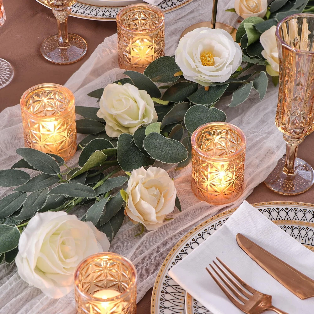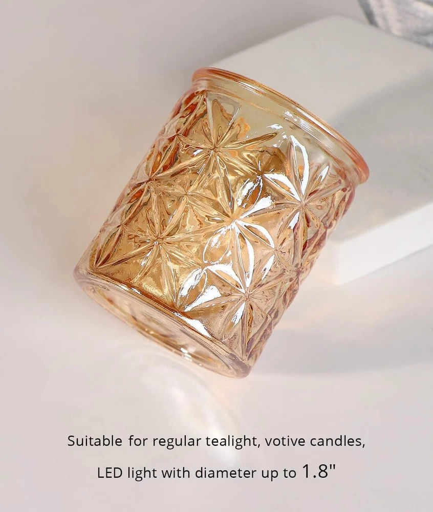 These gold votive candle holders are absolutely stunning! The electroplated finish gives them a luxurious shine that instantly elevates any table setting. Perfect for weddings, parties, or home decor, they add a touch of elegance without being overpowering. The set of 12 is great for bulk decorating, and the quality feels durable yet lightweight. They hold tea lights securely and create the most beautiful warm glow. Definitely worth it for the price—highly recommend!