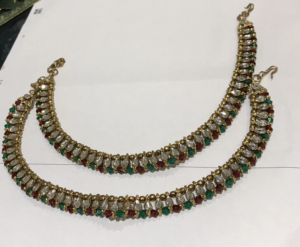 Beautiful antique Gold anklet payal chanjar pazaib foot chain feet jewellery/ Bridal Pazaib. Pictures are part of description 2 in one pack