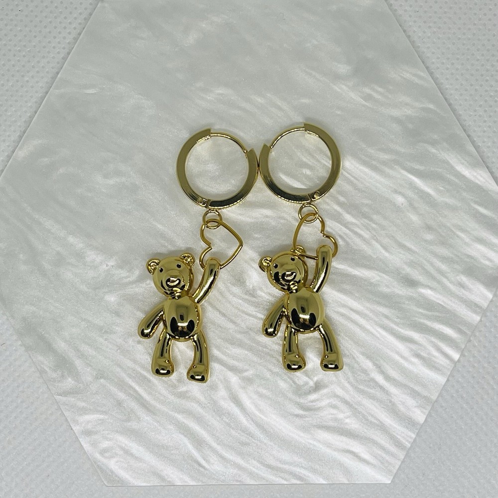 These 18k Gold plated hoop earrings with a dangling teddy bear heart charm are a playful and charming accessory. The earrings feature a classic, polished gold hoop design, which serves as a subtle and elegant base. Hanging from each hoop is a small, adorable teddy bear charm, crafted with attention to detail. The teddy bear holds a heart, adding a sweet and whimsical touch. The combination of the warm gold and the playful charm gives the earrings a youthful, yet refined look, making them a fun and unique piece of jewelry suitable for both casual and dressy occasions. #GoldHoopEarrings #TeddyBearCharm #HeartCharm #CuteEarrings #PlayfulJewelry #SweetStyle #WhimsicalAccessories #GoldJewelry #AdorableEarrings #FashionDetails #CharmJewelry