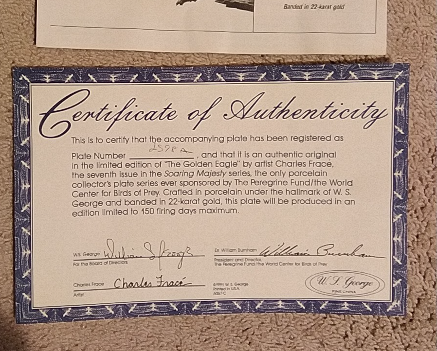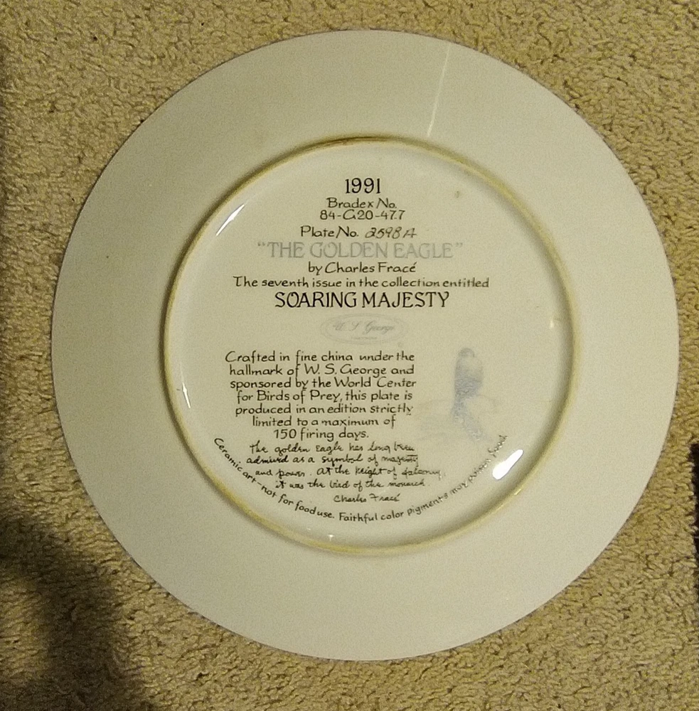 $ 5.19Bradford Exchange Peregrine Falcon Soaring Majesty Plate by Charles Frace 1991