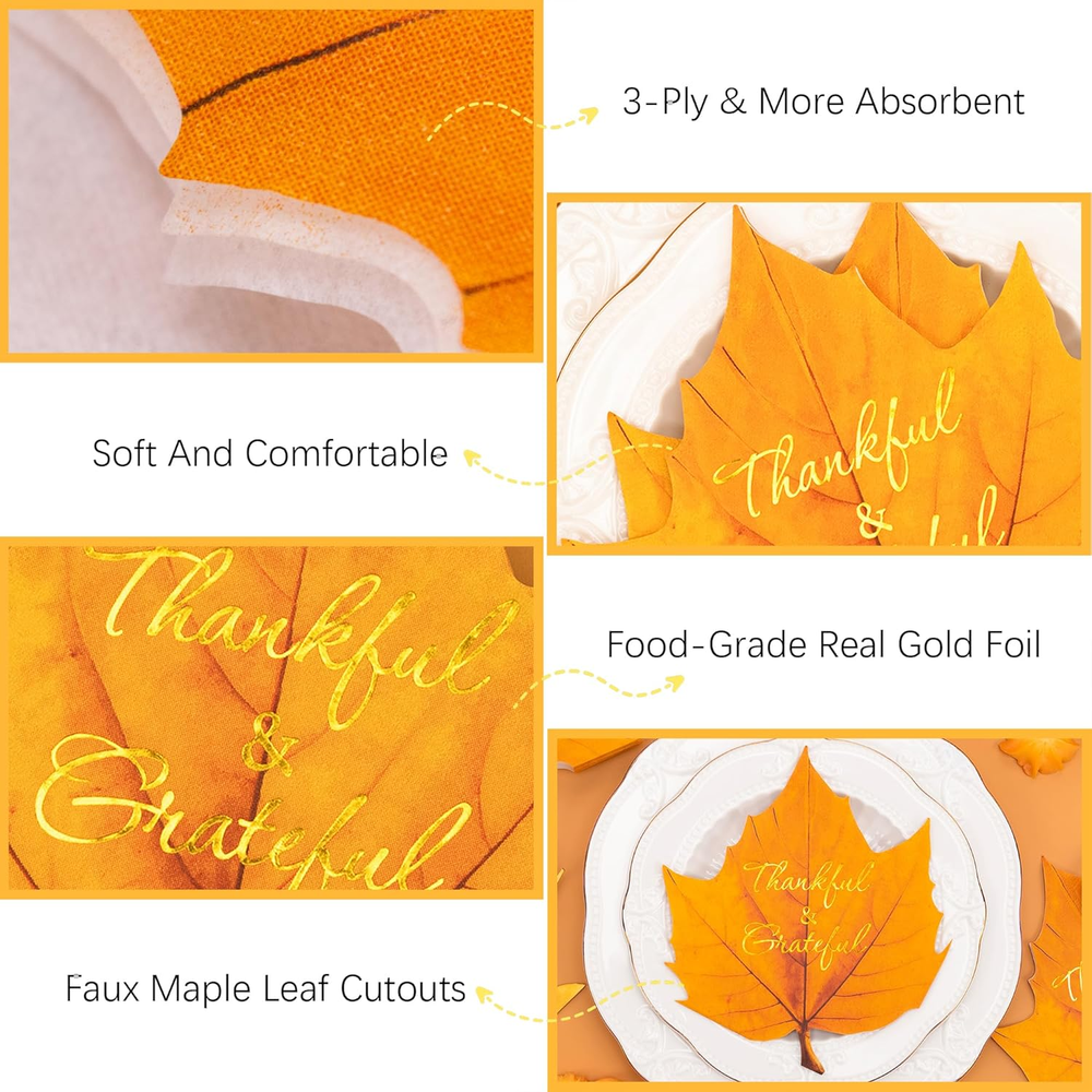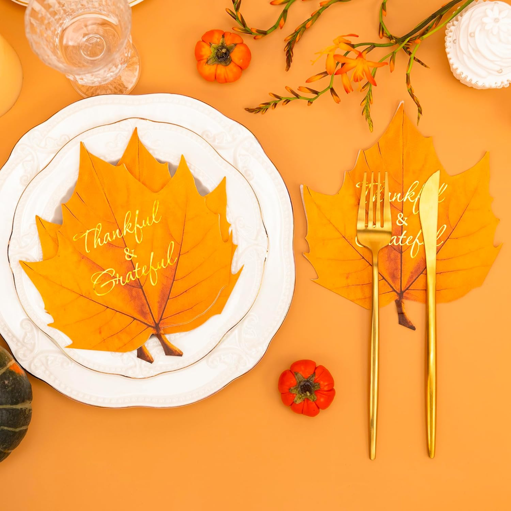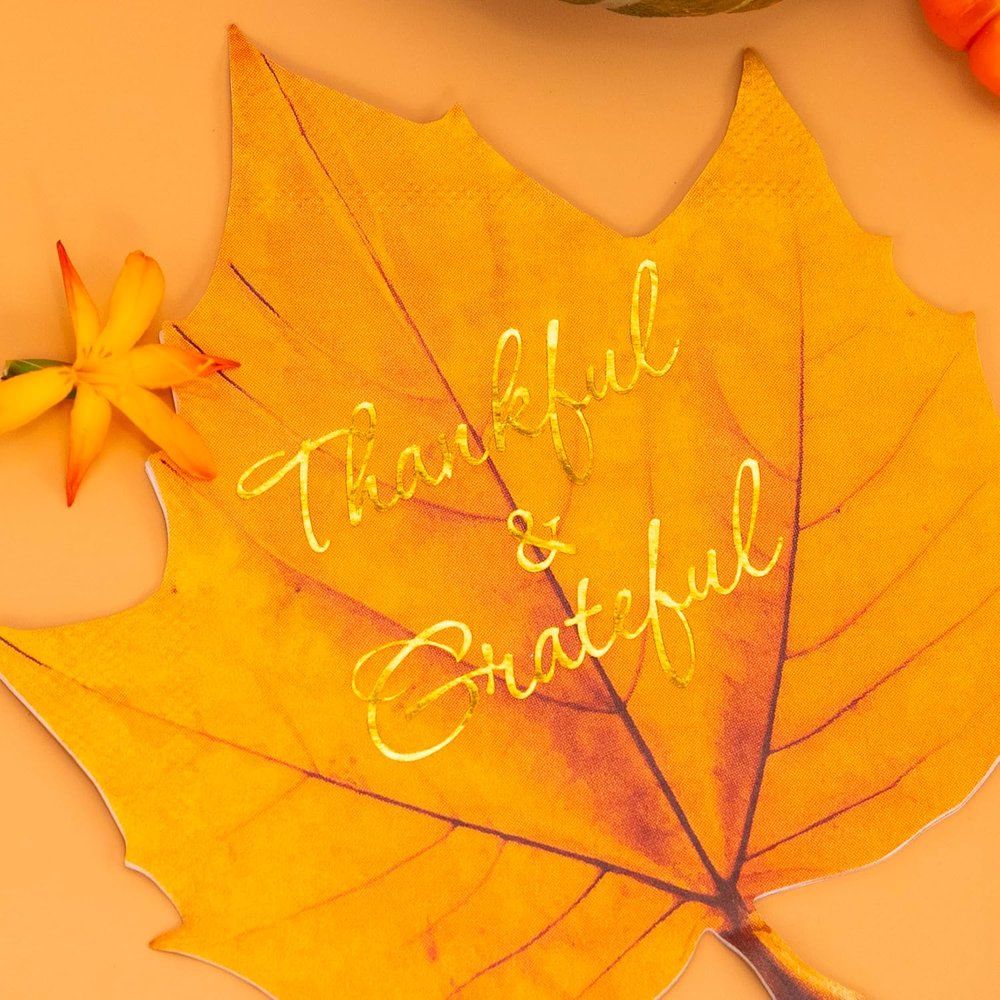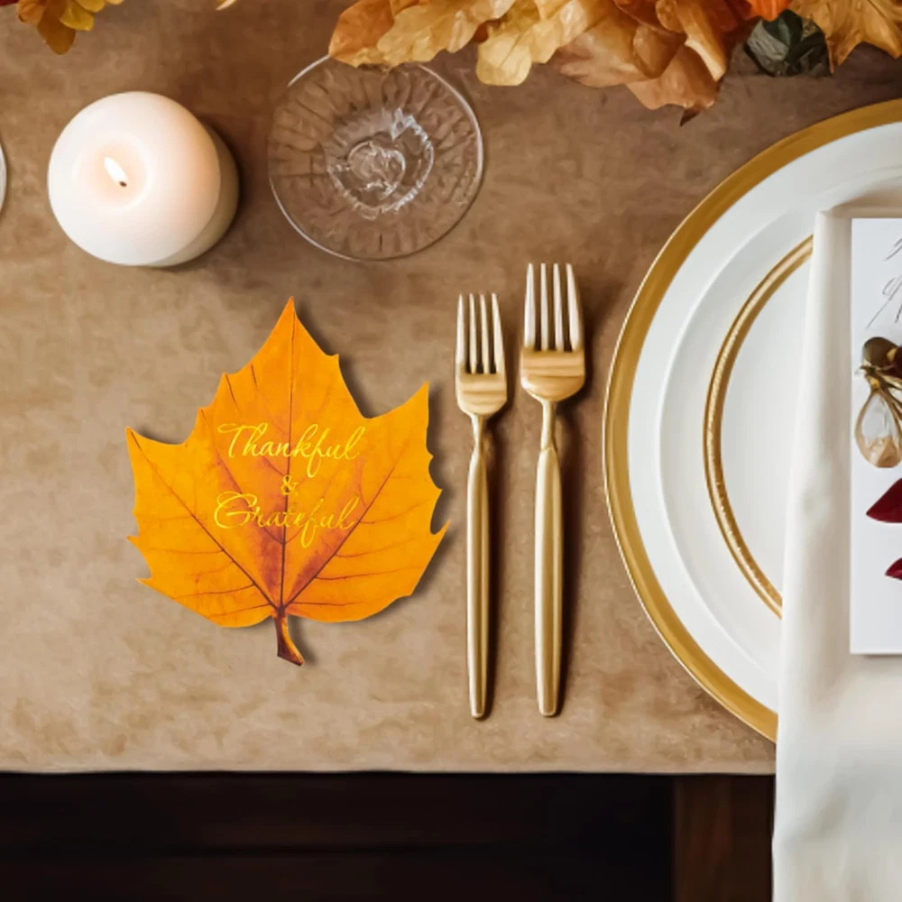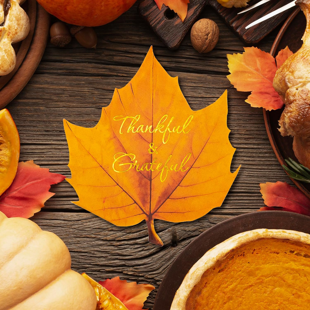 50-Count,3-Ply Cocktail beverage, appetizer, or dessert size napkins, 4.9-inches when folded. 9.8 * 9.8 inches when unfolded Golden leaf print white napkin made from sustainable, biodegradable paper, our napkins keep both your tables and our planet clean! THICK AND SOFT: Each sheet is 3-ply to ensure that it doesn't tear easily when used. It's also highly absorbent and soft to ensure a comfortable wiping experience. Celebrate a Thanksgiving celebration party, make a statement with these cute printed napkins which are sure to complement your party dinnerware; perfect for parties, celebrations, cocktail evenings, luncheons, or buffets. Be sure to order plenty of napkins for your event - we recommend 2 to 3 napkins per person Product Description CRISKY THANKSGIVING GOLDEN LEAF DISPOSABLE COCKTAIL DECORATIVE NAPKINS GOLDEN LEAF SHAPE & GOLD FOIL SCRIPT DESIGN The video showcases the product in use. The video guides you through product setup. The video compares multiple products. The video shows the product being unpacked. CLASSIC GOLDEN LEAF DESIGN & PREMIUM QUALITY Simple and classic design , along with autumn golden leaf schemes , we convey a meticulous yet uncomplicated thanksgiving party decoration concept. Sustainable paper material , along with thick and soft 3-ply construction , we insist providing all customers the high quality product. Safety & Reliability , Our napkins are made from sustainable paper, ensuring your tables and the planet stay clean. EXCELLENT & PREMIUM FOOD-SAFE CLASS QUALITY ELEGANT & CLASSIC GOLDEN LEAF DESIGN Crisky Heavy Duty Thank You Cards Bulk Customer Reviews 4.7 out of 5 stars 15 4.9 out of 5 stars 29 4.9 out of 5 stars 29 4.7 out of 5 stars 13 5.0 out of 5 stars 3 Price $15.99 $ 15 . 99 $15.99 $ 15 . 99 — $6.39 $ 6 . 39 — SIZE 4” x 6” 4” x 6” 4” x 6” 4” x 6” 4” x 6” PALETTES Chromatic Color/Gold Chromatic Color/Gold Chromatic Color/White/Gold Chromatic Color/White/Gold White/Gold QUANTITY 50 50 50 50 50 MATERIAL 100% Native Wood Pulp 100% Native Wood Pulp 100% Native Wood Pulp 100% Native Wood Pulp 100% Native Wood Pulp SUIT FOR All Occasion Baby Shower Baby Shower All Occasion All Occasion