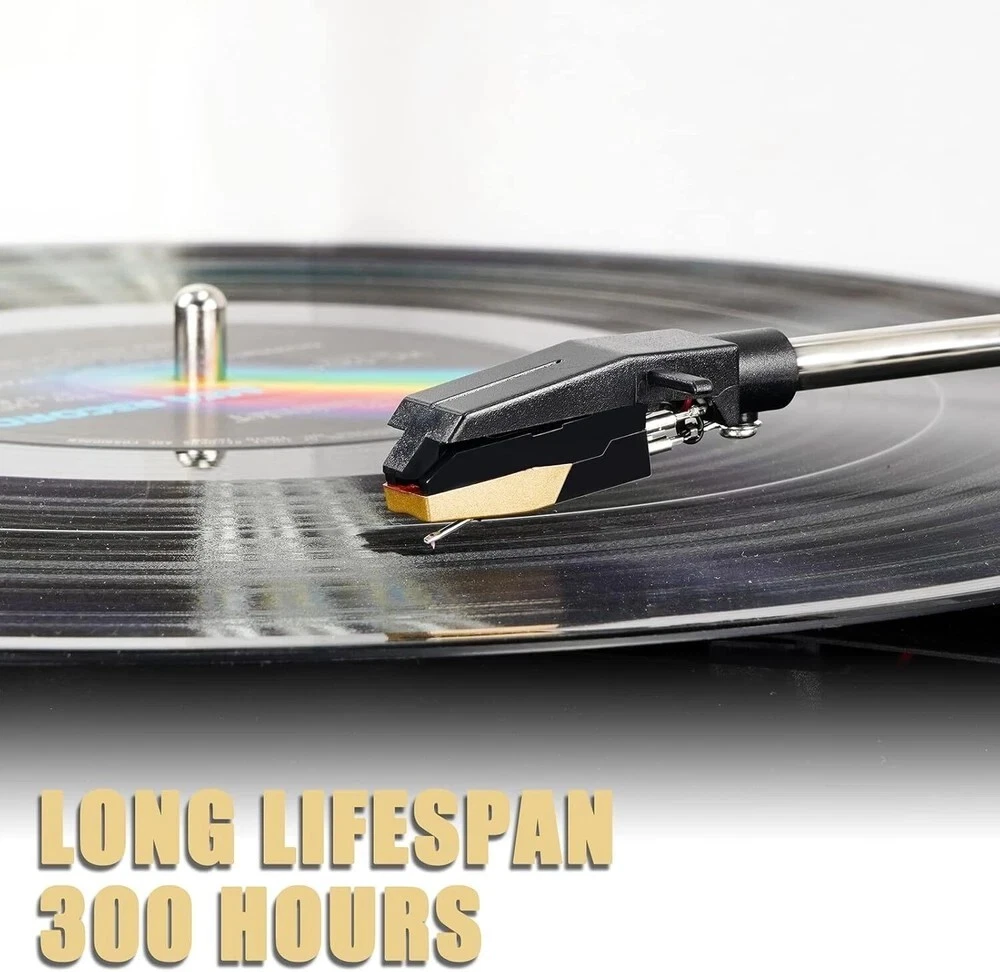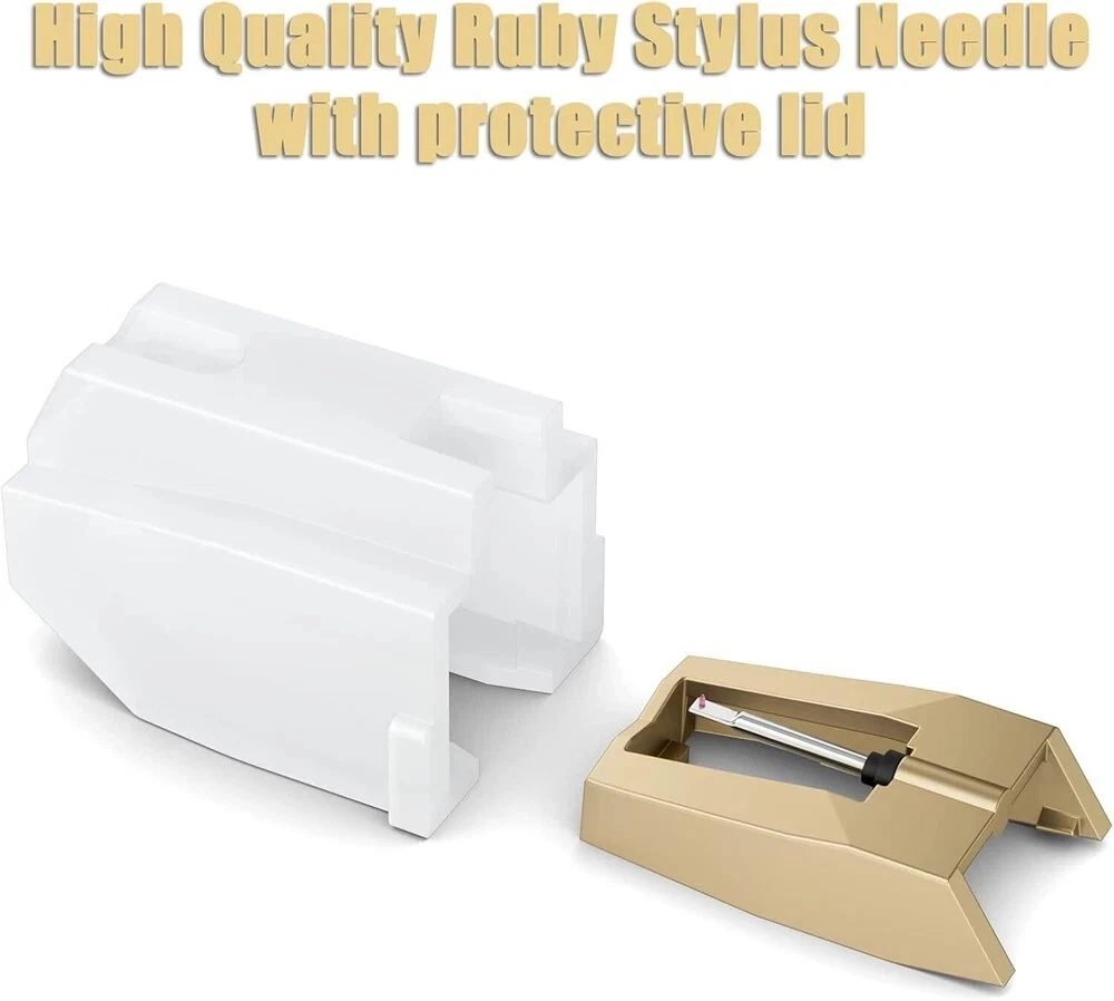 ✅【Golden Record Player Needle】--The golden record needle has a diamond stylus with appropriate needle forces. It can play 33 1/3, 45, 78PRM records player. ✅【No Skip Design & High Sound Quality】--The upgraded turntable cartridge needle has a tapered diamond stylus with powerful tracking capabilities. Two-channel (stereo) design, channel balance (at 1 kHz), less than 2 dB, providing you with a more accurate, purer and more stable listening experience. ✅【Widely Application】--It is a nice Ruby Ceramic record player needle replacement for most record player brand existing in the market now. f you do not confirm whether it works with your turntable or not, welcome to contact with us firstly. ✅【Easy Installation】--This vinyl turntable needle replacement stylus is easy to install. No need tools. You can easily replace turntable needles for vinyl records by yourself anytime. 🎁【Intimate Packed】--Each record player needles will be covered with a white plastic cap to protect it from any damage and packed with a durable box to ensure safely delivery. If you are not satisfied with the phonograph needle, welcome to contact with us. We’ll find a good solution for you. Compatible with More Than 90% New Version Vinyl Record Players, Including Not Limited to Below: Crosley NP1, NP6, CR248, CR27, CR43, CR44, CR46C, CR48C, CR49B, CR49TA, CR49TW, CR50TW, CR53, CR67, CR69, CR70, CR73, CR77, CR78, CR79, CR704, CR711, CR712CD, CR87CD, CR6019A, CR8005A, CR7008A, CR6019A, CR8005A, G6082 ION iCT05RS, iCT09RS, Quick Play LP, Power Play LP, Quick Play Flash, Contour LP, Vertical Vinyl, iLP, Archive LP, Forever LP, Live LP, Pure LP, iLP, Max LP Innovative-Technology ITRR-501, ITRRS-300, ITVS-750 Victrola Nostalgic and suitcase turntable player Jensen JTA222, JTA230, JTA300, JTA380, JTA410, JTA420, JTA450, JTA460, JTA475, JTA22 Tyler Pyle PTCDS8UBT, PLTT21BT, PTCD4BT, PTTCSM70BT, PVTT15UBT