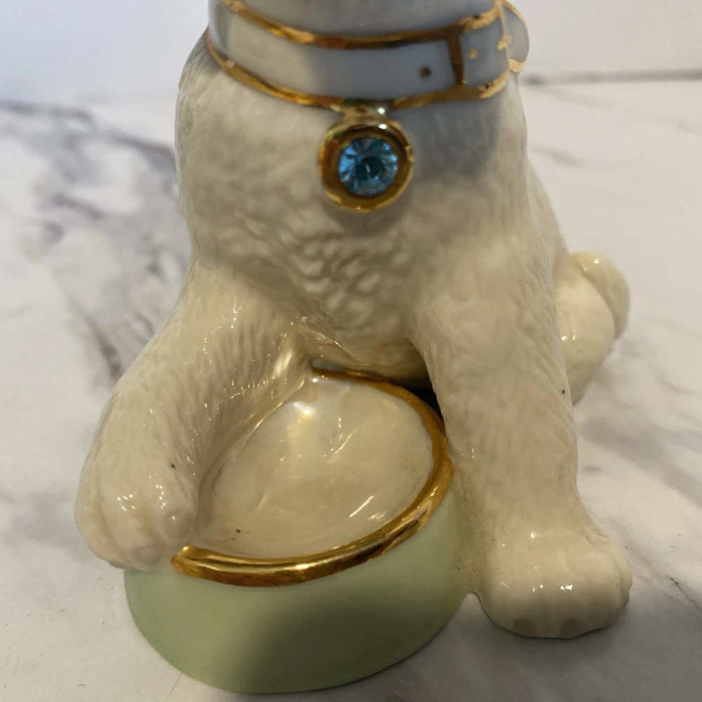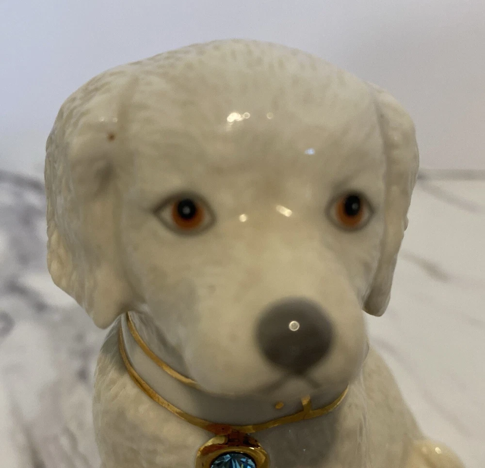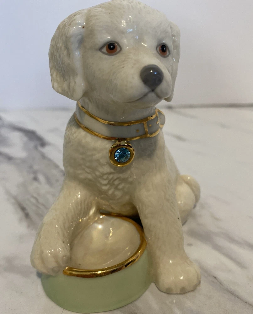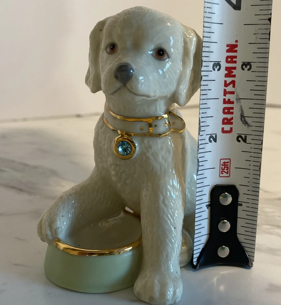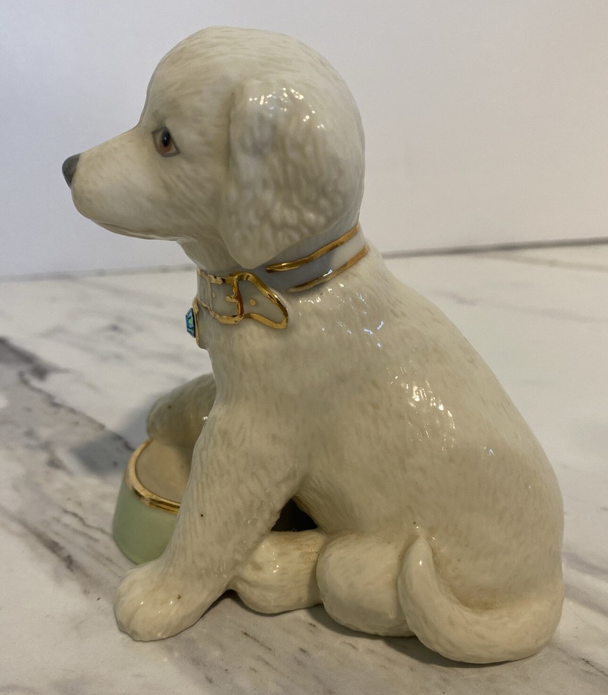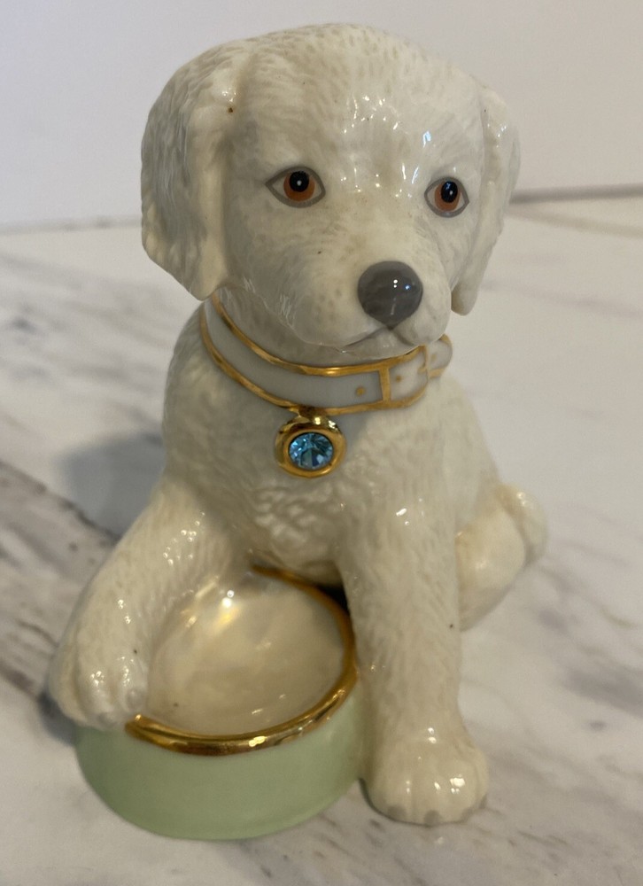 LENOX Puppy Golden Retriever w/Bowl Figurine w/24k Gilding Blue Stone Birthday Pre-Owned, see photos for best representation. Very good condition. No chips or breaks. Thank you for looking and supporting my small business!
