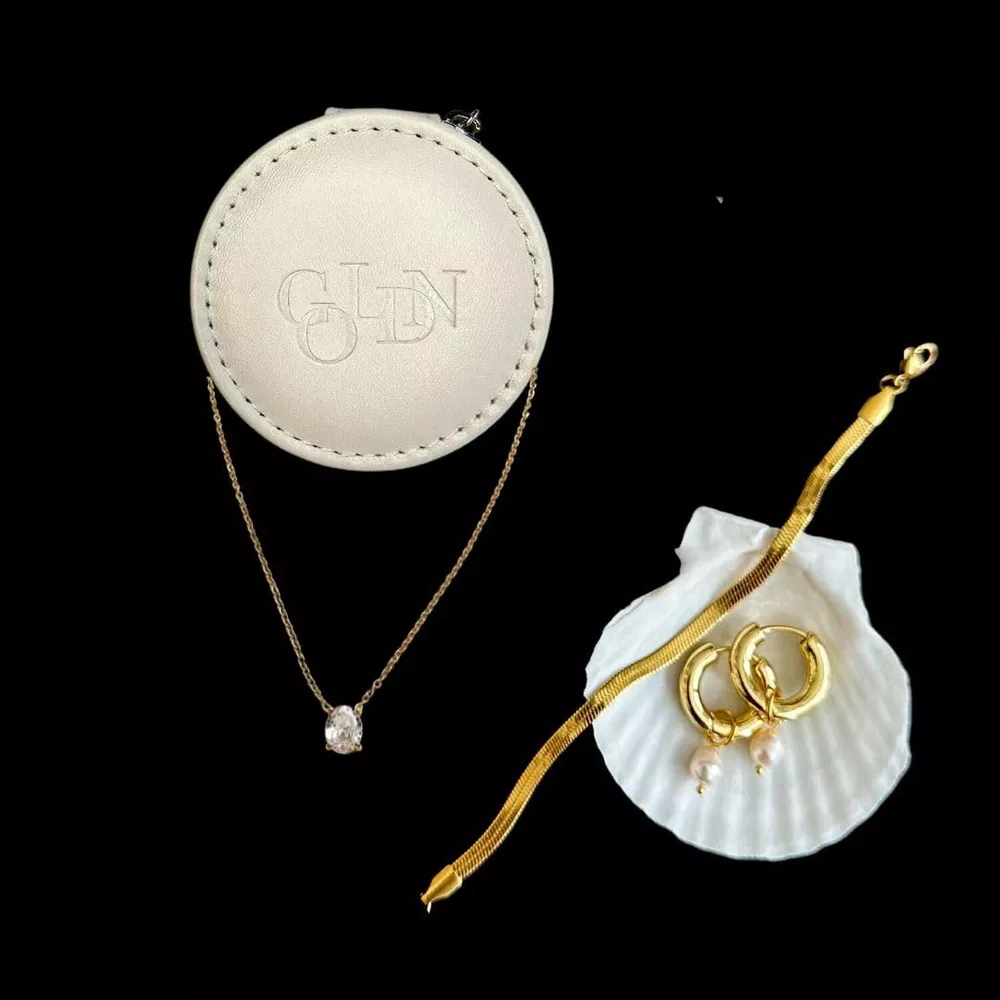 Goldn 3 Piece Jewelry Set for Women, Real Gold Plated Luxury Gifting Product Details Style: Minimalist Brand: Goldn MPN: Does not apply UPC: Does not apply EAN: Does not apply Department : womens Date First Available : August 14, 2023 Brand, Seller, or Collection Name: Goldn Metal stamp: GP STAG Metal: gold plated stainless steel Material: Sterling Silver, Gold, Stainless Steel Gem Type: Cubic Zirconia, Pearl, Diamond Clasp: Lobster Clasp Number of stones: 3