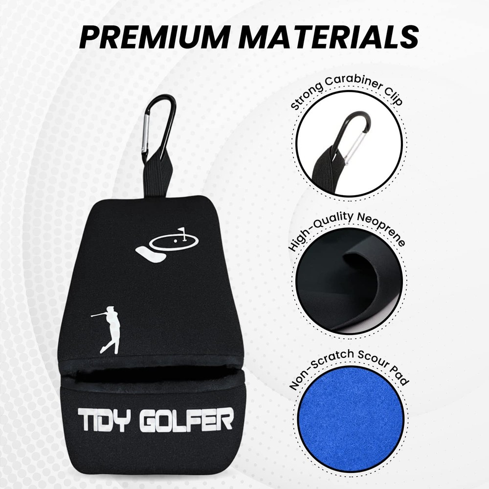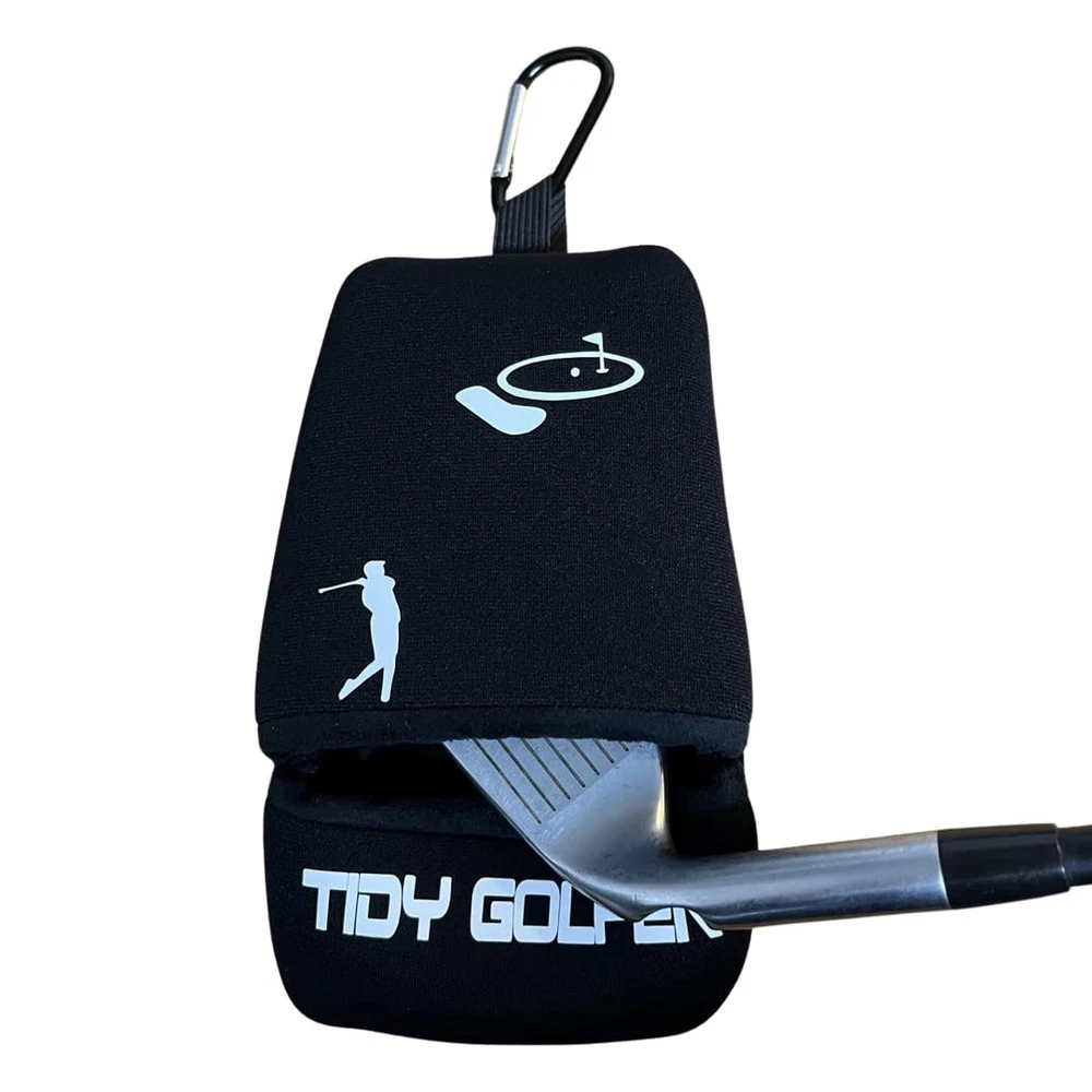 The golf ball cleaner pouch scrubs deep into irons giving you the opportunity to clean your Irons quickly and efficiently on the course. Clean golf balls and irons increase accuracy and eventually improve your score because now you are sure your ball rolls straight and flies true. Towels get dried out, misplaced, lost and they are bulky to use. portable golf ball cleaner has a large cleaning area and you will be surprised how good a cleaning job it can perform. Golf iron cleaner is made of durable waterproof material, the pouch cleaner stays wet on the inside and dries on the outside. It cleans both golf irons and golf balls. is able to clean after every shot. Compact and easy to use, stays out of the way till needed. Never be caught with a dirty ball because of broken or missing washer balls on the course again. Just slip your golf ball into the , rub it around the microfiber lining, and you have a clean ball ready for your next shot. The Golf ball cleaner can clip on to golf bag or belt loop. Just add a small amount of water into the top section and massage evenly throughout. Practical and convenient golf accessories are a great choice for golf lovers. It makes a wonderful gift. Superior Clean: This golf ball washer is not only good to clean your golf balls with one hand, but also possible to clean iron clubs' heads for a perfect iron shot. The golf club and ball washer allow you to clean golf balls quickly and conveniently without the need for a towel. Excellent Workmanship: The perfect golf club washer is lightweight, waterproof, and washable. Simply turn golf cleaner inside-out, wash, and let air dry, safe & effective way to clean dirt, and grass stains from your ball. Durable Material: The outer layer of golf club cleaner is made of high-quality and durable neoprene, which is more waterproof and durable than ordinary cloth. The inner material of the golf club and ball cleaner is microfiber which has a comfortable feel, soft and durable, and can protect the spherical surface from being scratched. The Tidy Golfers club cleaner inside stays wet for hours while the outside stays nice and dry. Easy to Use: Compact and easy to use a cleaner that stays out of the way till needed. The ergonomic design makes the golf ball and club washer comfortable in your hand. Clips the golf ball cleaner portable on to golf bag or belt loop. Just add a small amount of water into the top section and massage evenly throughout. Ideal for Gift: The ultimate ball and club washer has excellent wear resistance and can provide you with an excellent experience. Our practical and convenient golf cleaner accessories are a great choice for golf lovers. A portable golf ball washer makes a wonderful gift for Father's Day, Mother's Day, Christmas, and birthdays. It's always with you.