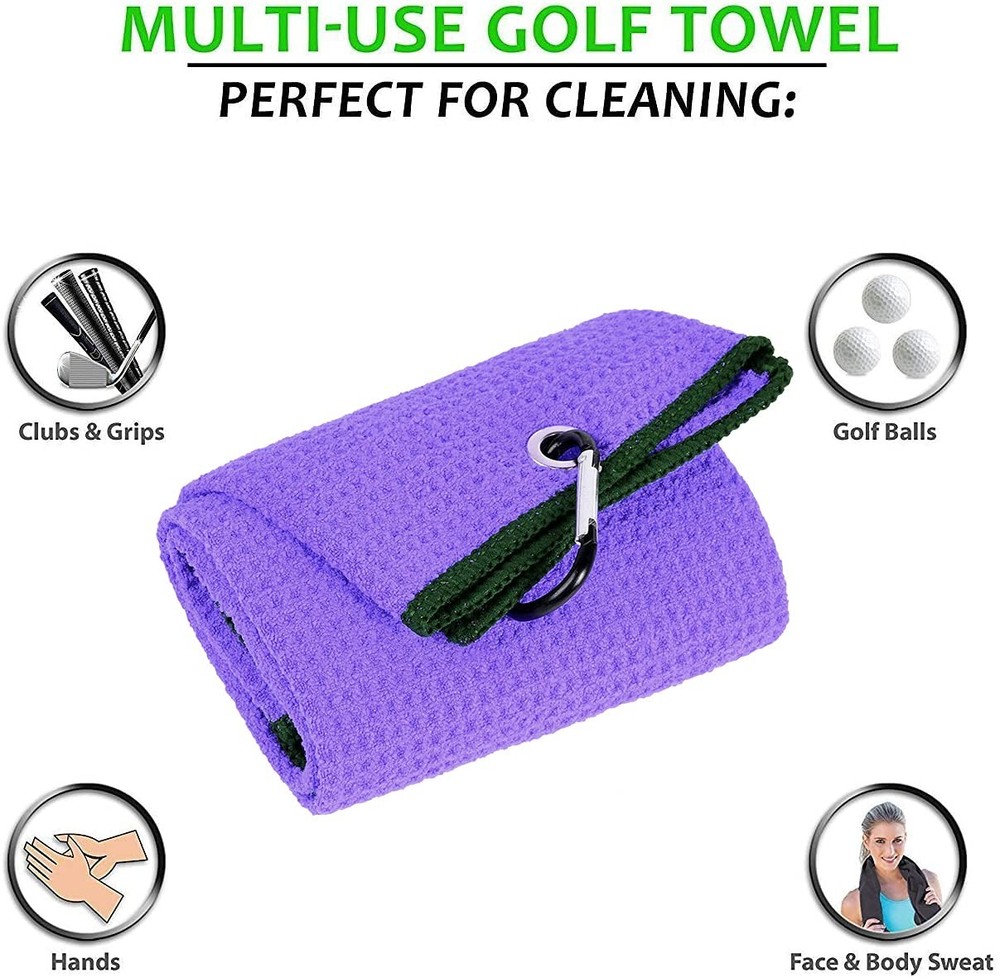 About The Item: This golf towel is made of microfiber. This soft, absorbent microfiber towel is lightweight and quickly drying. Intended for dry or damp use to wipe down all golf equipment. Complete with sewn side hems and a carabiner clip for attaching to your golf or duffel bag. Size: 15.7" x 23.6" Weight: 1 Pack 0.22lb/100gram 2 Pack 0.44lb/200gram 3 Pack 0.66lb/300gram Features: Light-Weight,Easy to Take and Soft. Soft touch and good hand feeling. Easy to wash and dry. Super absorbent and Lint free. Delicate edge and dense stitch, durable. VALUE PACK COMBO: Tri-fold Microfiber Waffle Pattern Towel and etractable Brush Tool Kit with Groove Pick. CLEANING: Microfiber with waffle design removes dirt, mud, sand and grass better than cotton towels.Two sided brush cleans both irons and woods. COLORS: That matches your bag, club and favorite team TOWEL:Tri-fold Microfiber Golf Towel,15.7" X 23.6"with Carabiner Clip |Leaves lint and Streak Free|Not Scratch Paints Surfaces| Antistatic |Easy to Clean|Durable, Super Absorbent, Fast Drying removes dirt,mud, sand and grass better than cotton towels. BRUSH: Powerful brush that wipes off tough dirt easily for any iron/wood clubs without scratches. Sharp pick for tough dirt in grooves Soft and firm grip with good ergonomic design for any weather conditions,2 Ft Retractable zip-line can be attached to the bag and easy for reach and use during the play.