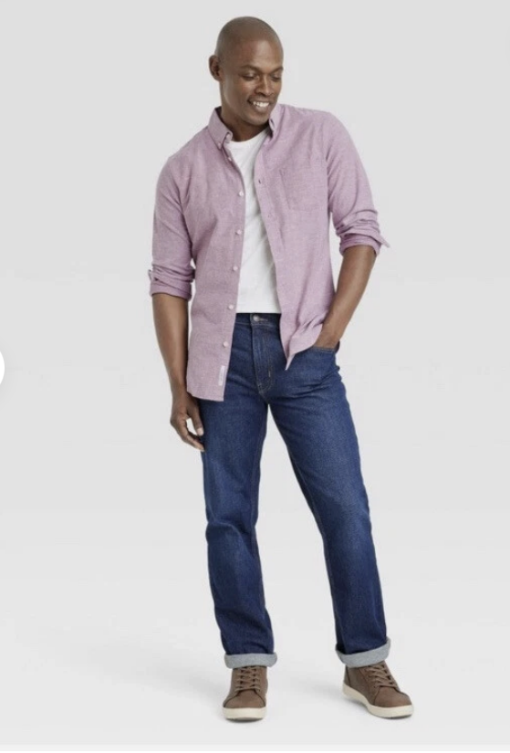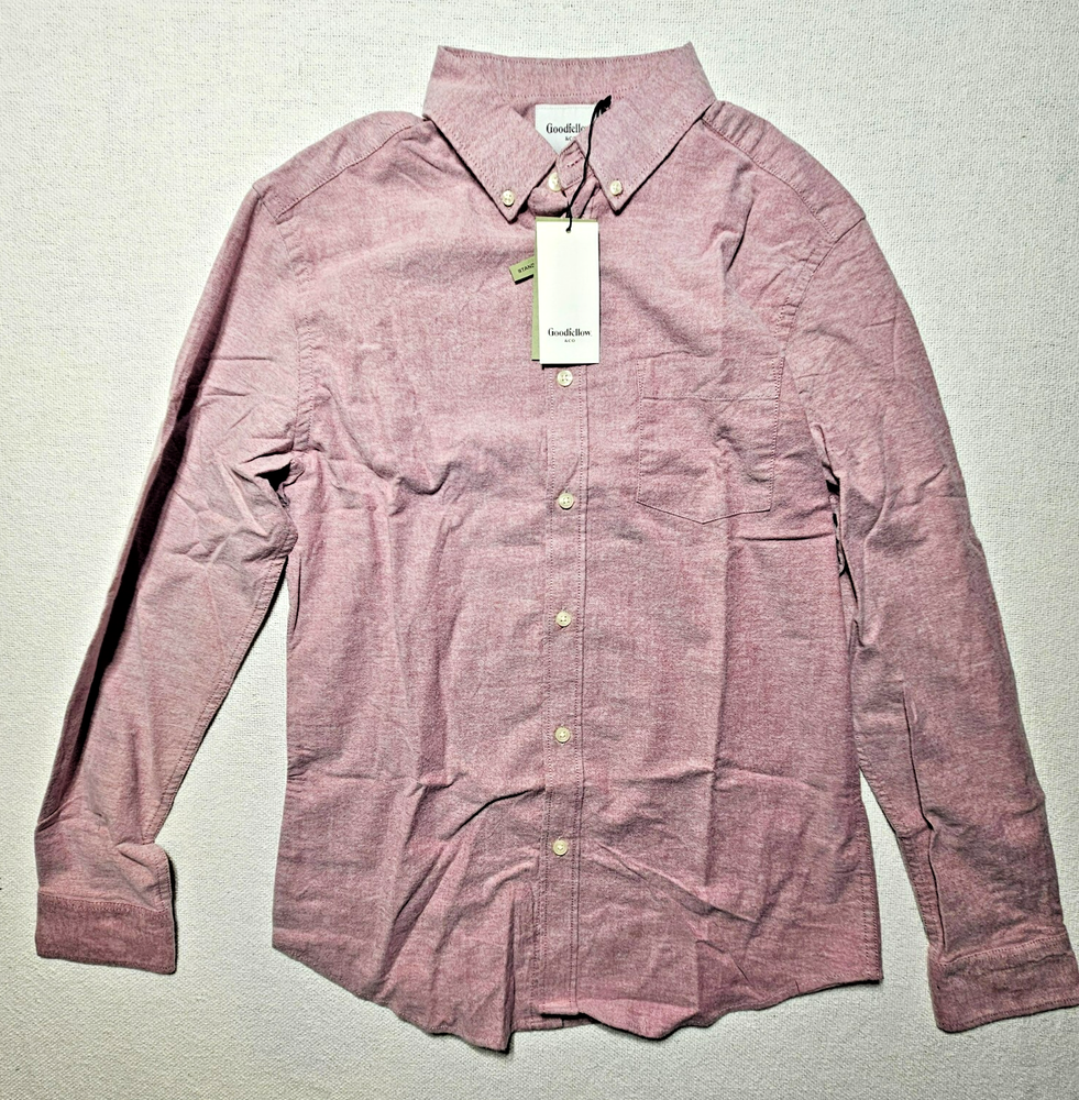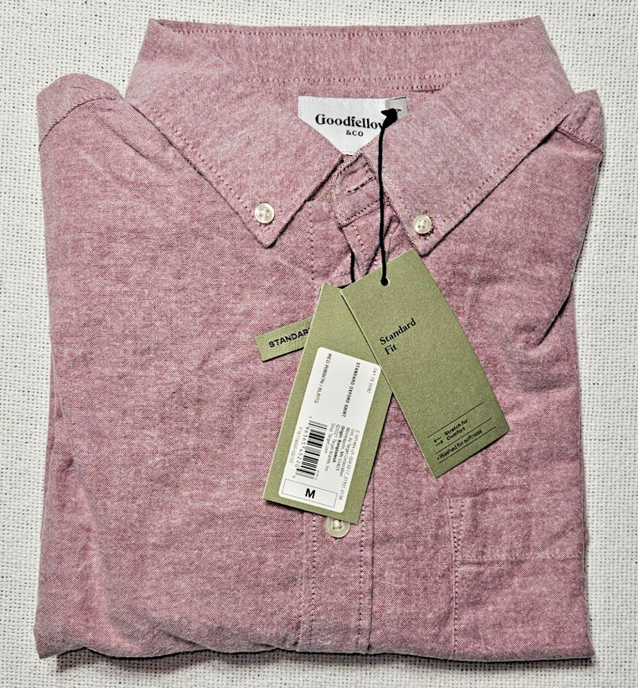 The GoodFellow Stretch Button Down Oxford Shirt in Red Ribbon color is a versatile piece for men's clothing. With a classic button-up style and a stretch fabric that offers comfort and flexibility, this shirt is perfect for various occasions such as casual outings, formal events, and even workwear. The shirt features a collared neckline, long sleeves, and a curved lower hem for a touch of sophistication. Made with a blend of spandex and cotton, this shirt is machine washable and easy to care for. Ideal for all seasons, this shirt is a wardrobe staple for any dapper man.